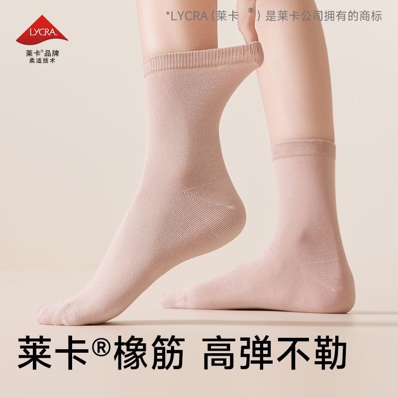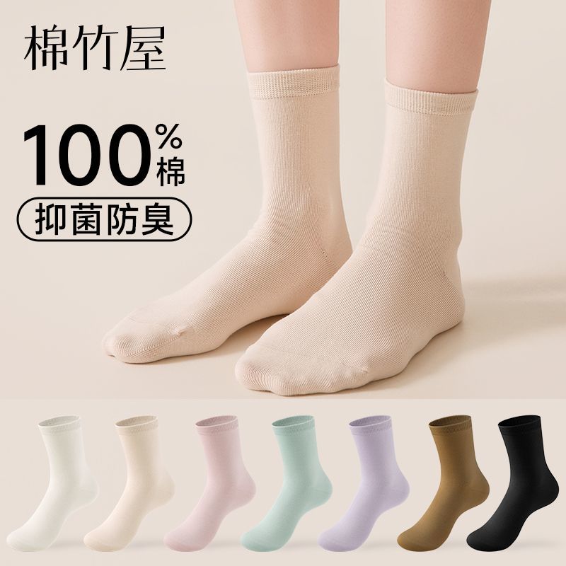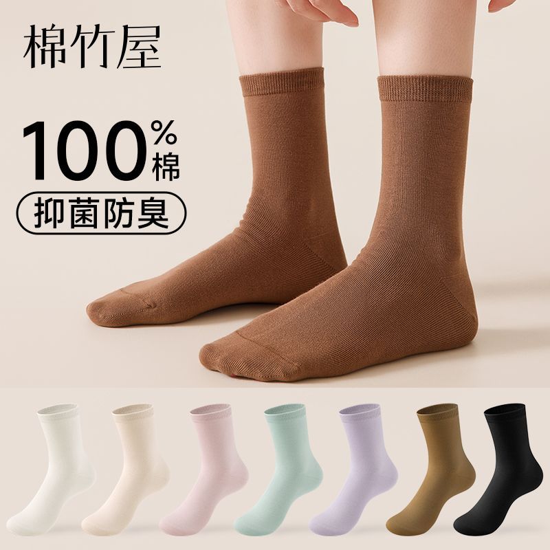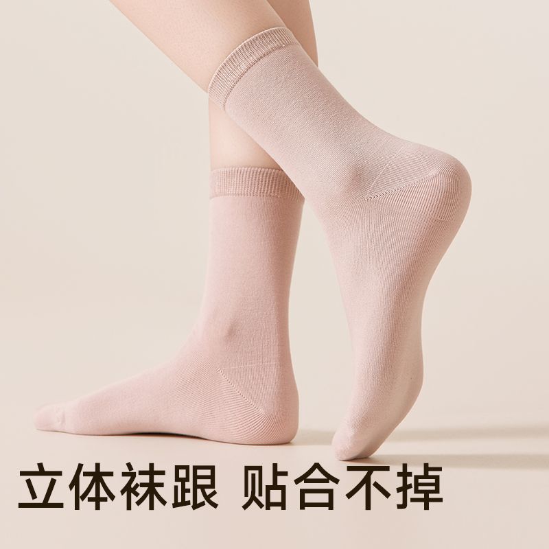 100%棉女袜子秋冬季纯棉松口中筒袜子抗菌防臭吸汗百搭月子袜