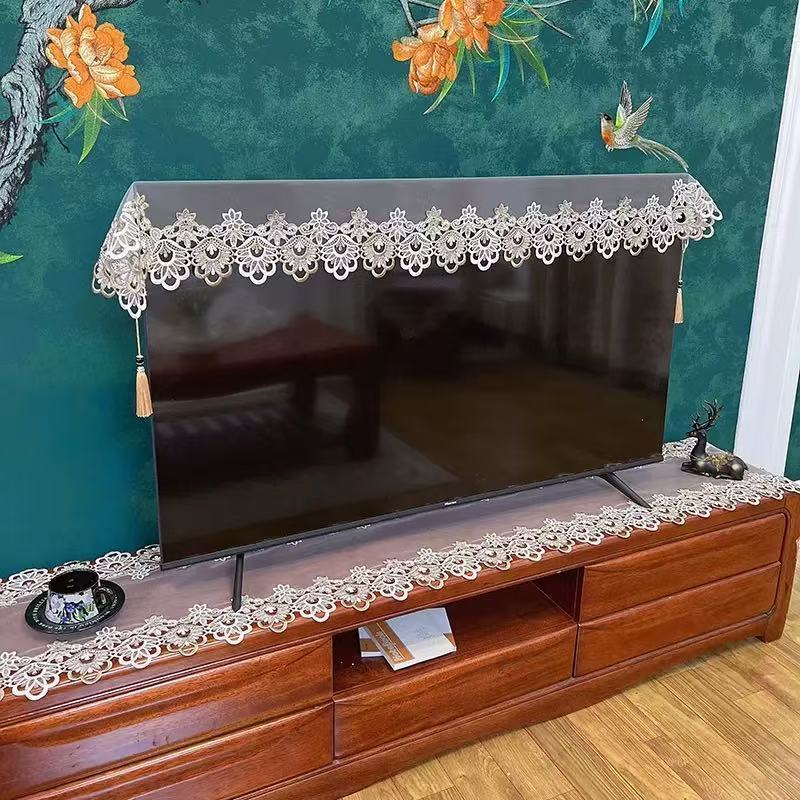 新款电视机蕾丝防尘盖防尘罩曲面电视不取挂式欧式壁挂式挂墙盖巾