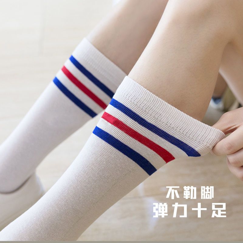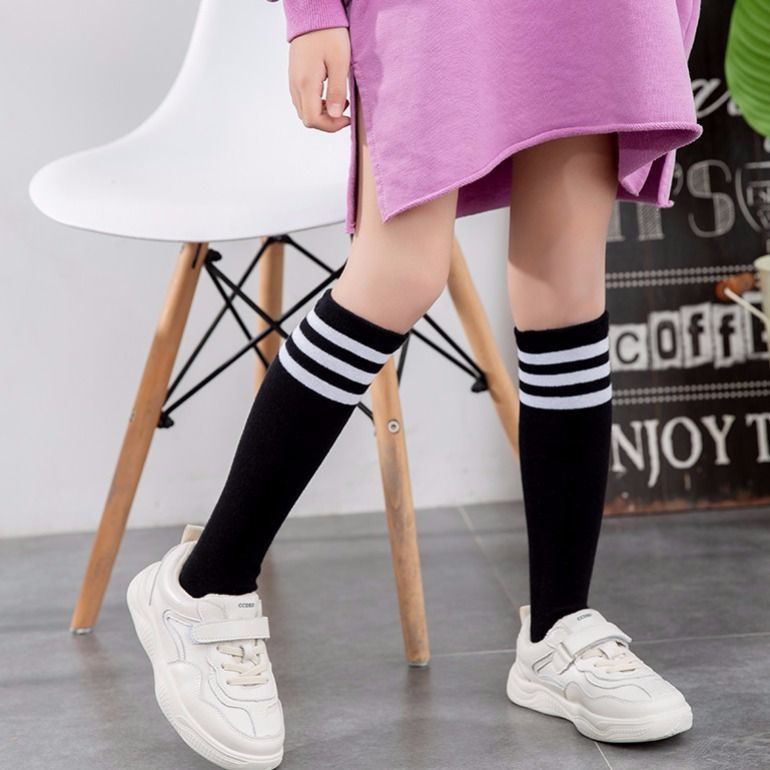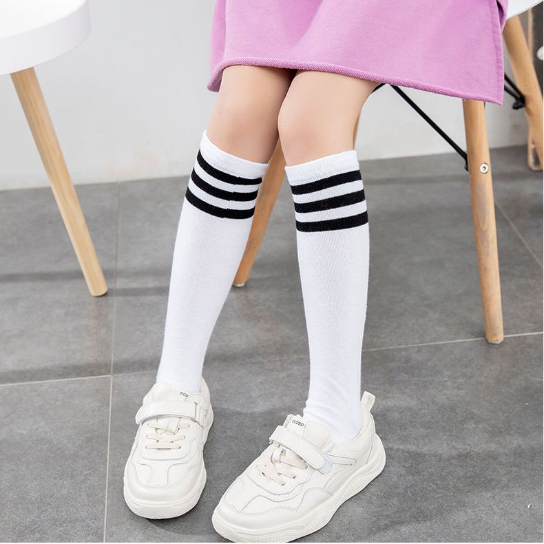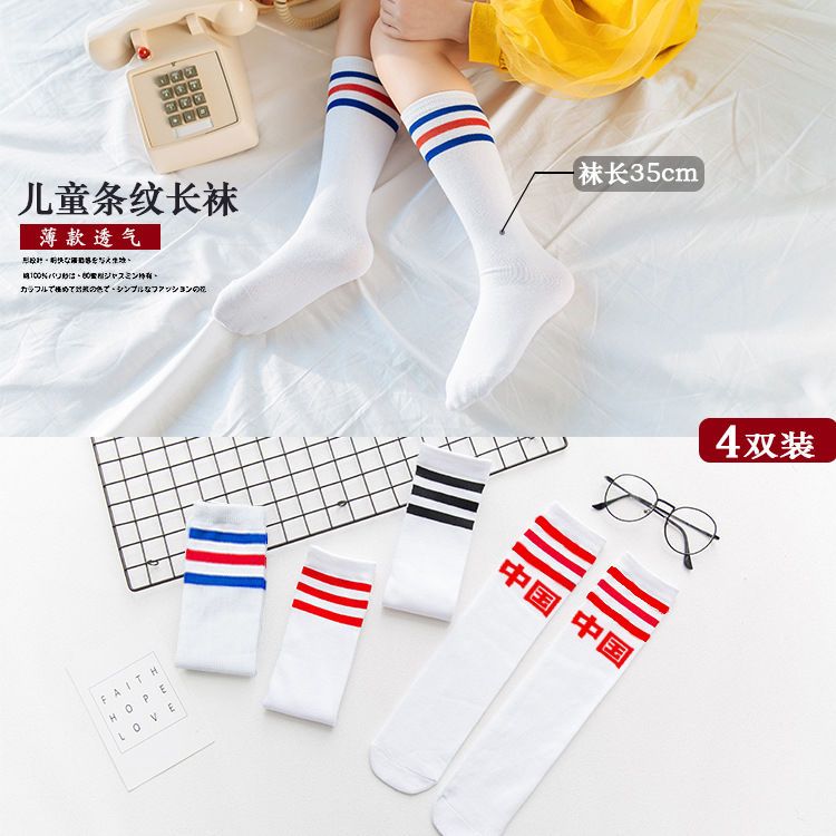 儿童夏季薄款中长筒透气棉男女学生白色足球运动舞蹈节目表演袜子