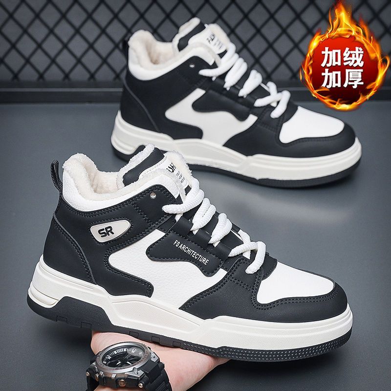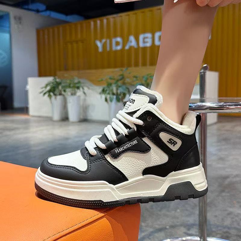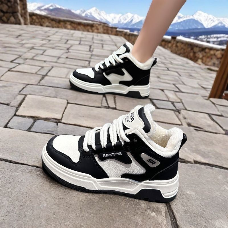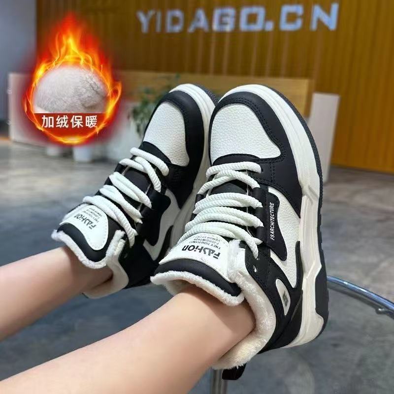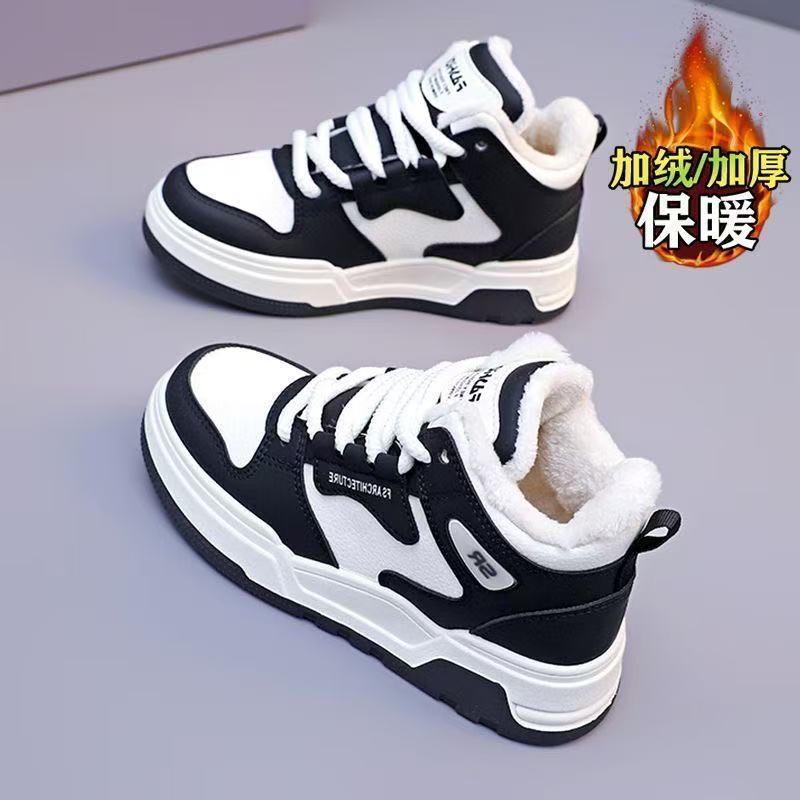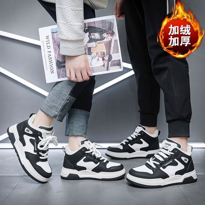 中帮棉鞋冬季加绒保暖板鞋休闲运动男女情侣黑白熊猫鞋男女都百搭