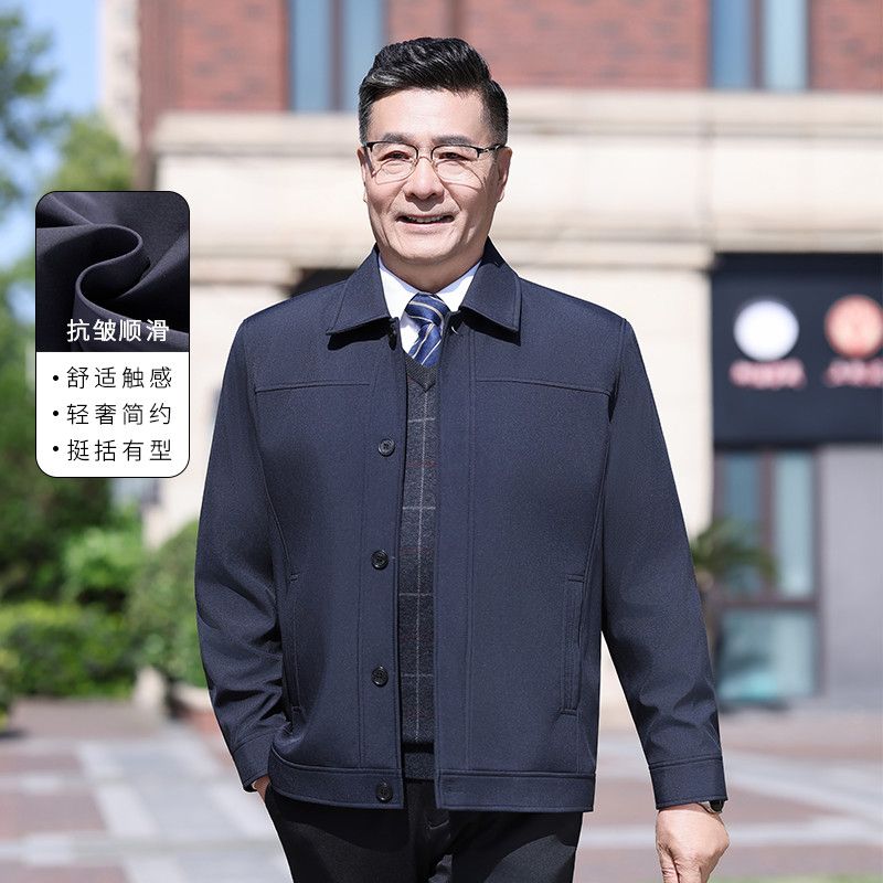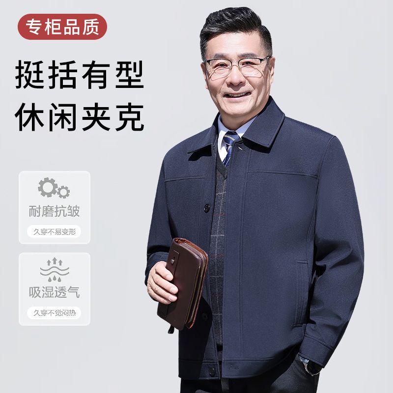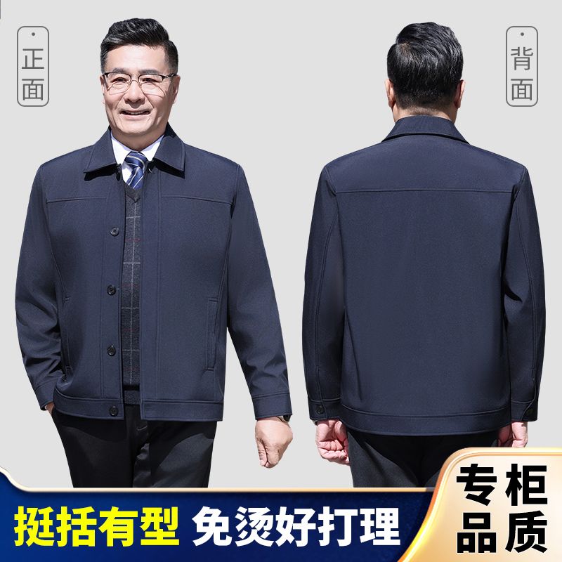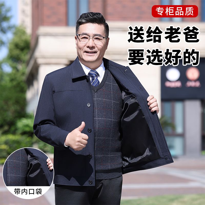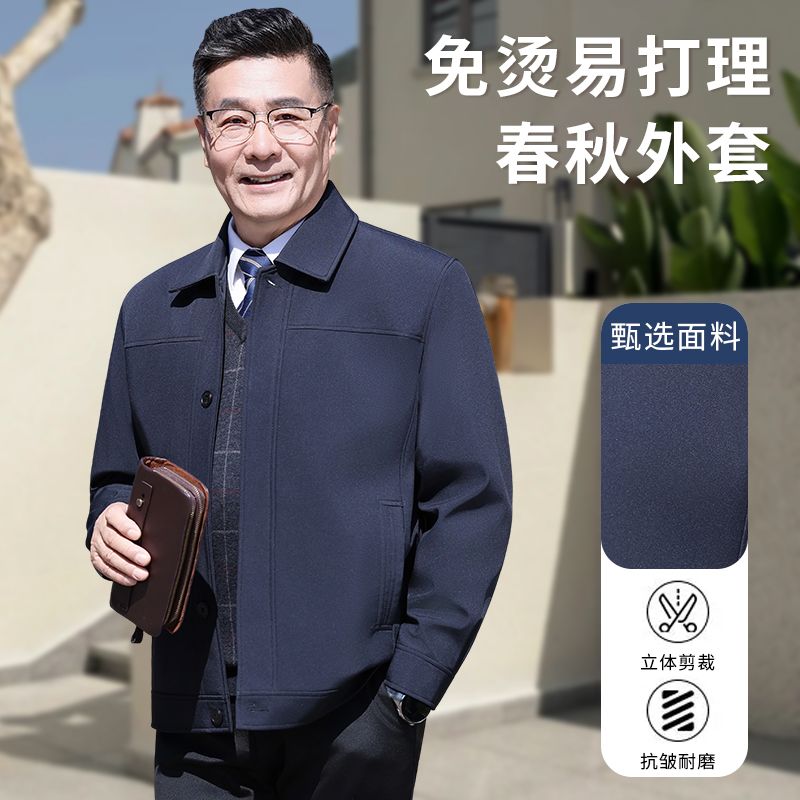 中老年男装夹克外套翻领上衣爸爸春秋休闲男士外套夹克衫宽松纽扣
