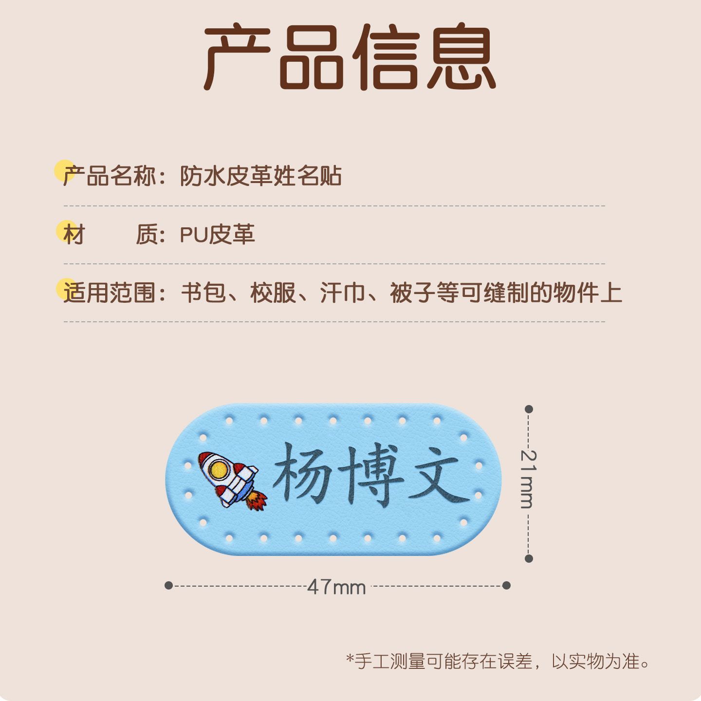 校园入园用品定制幼儿园姓名贴皮革名字贴新款可防水小孩儿童宝宝