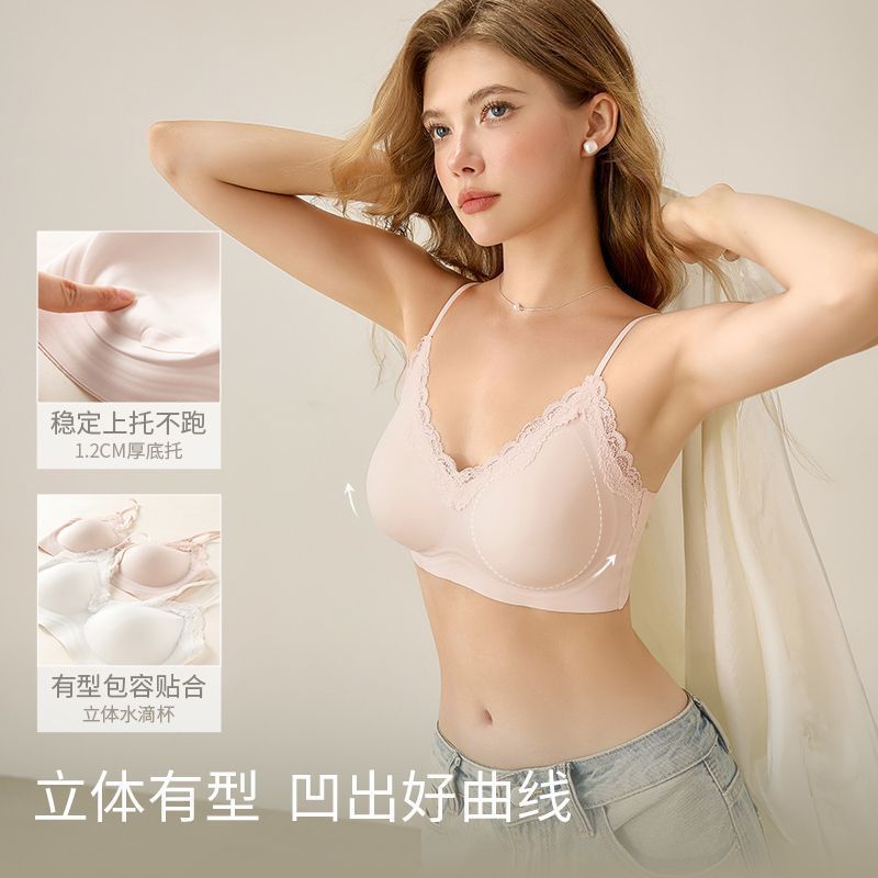 【都市丽人】无痕蕾丝女小胸内衣聚拢小胸背心细肩带文胸胸罩【4天内发货】