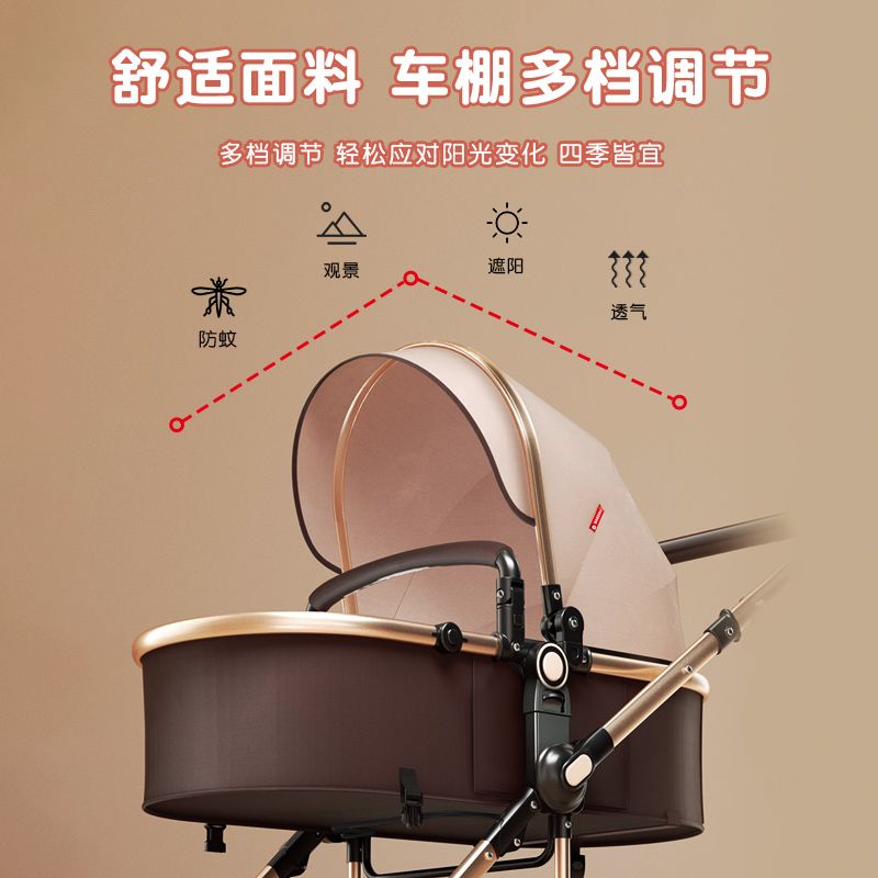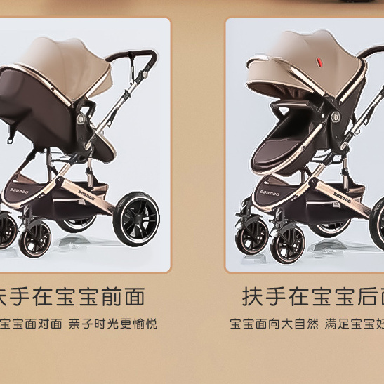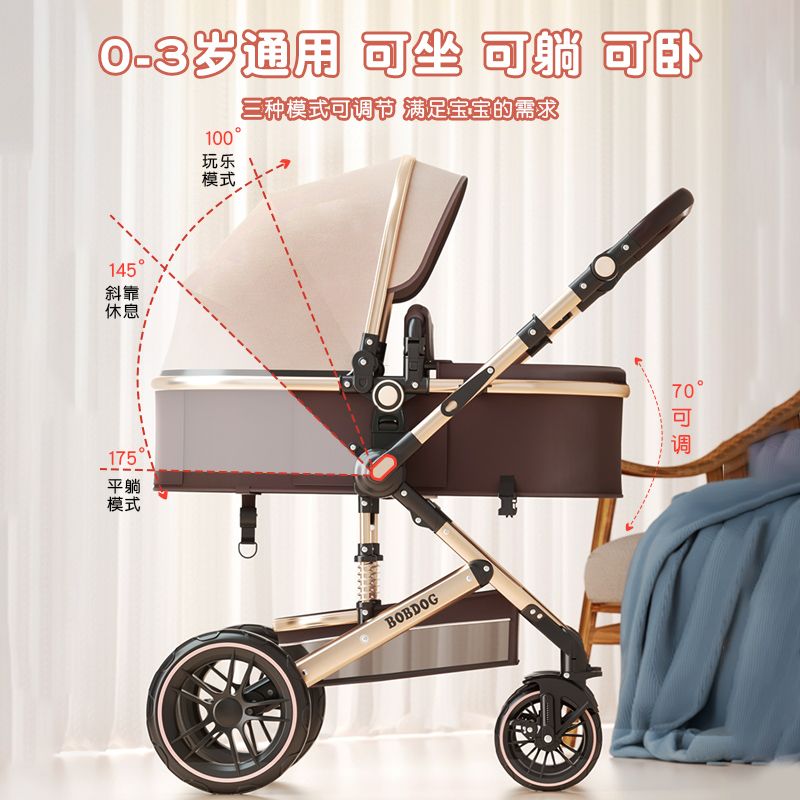 巴布豆婴儿手推车可坐可躺可折叠宝宝推车双向轻便景观婴幼儿推车