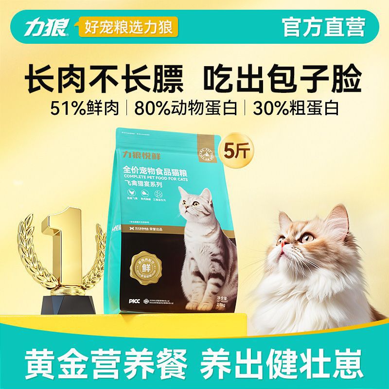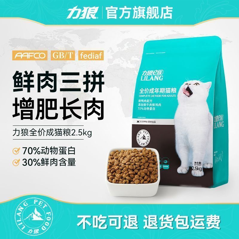 力狼猫粮成猫幼猫通用英短流浪猫营养增肥变胖全价天然粮5斤