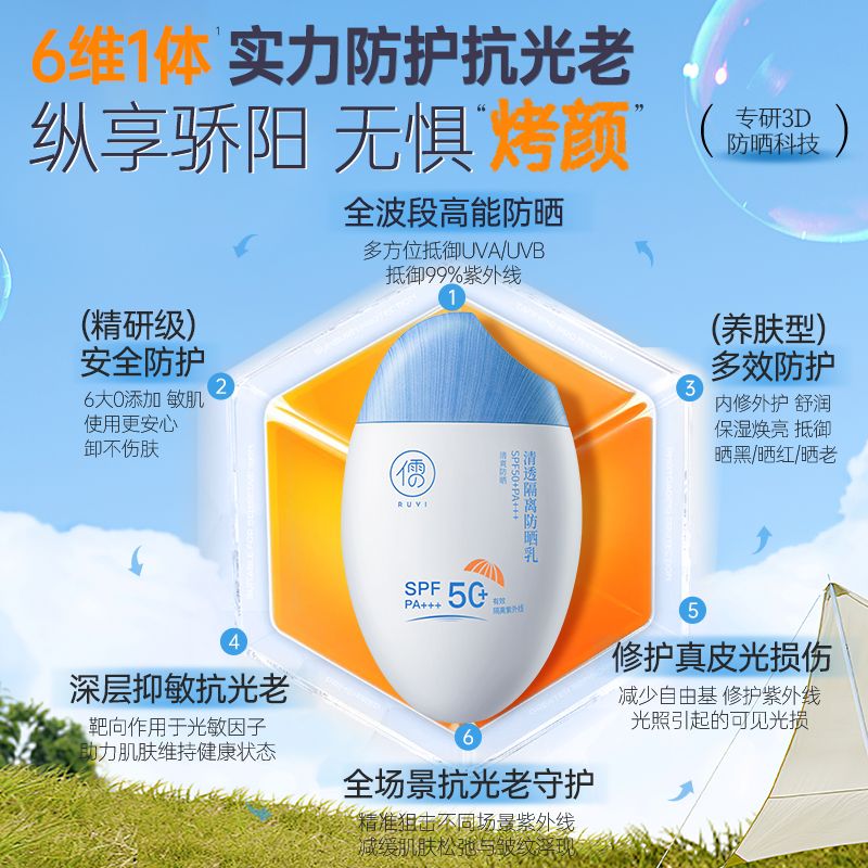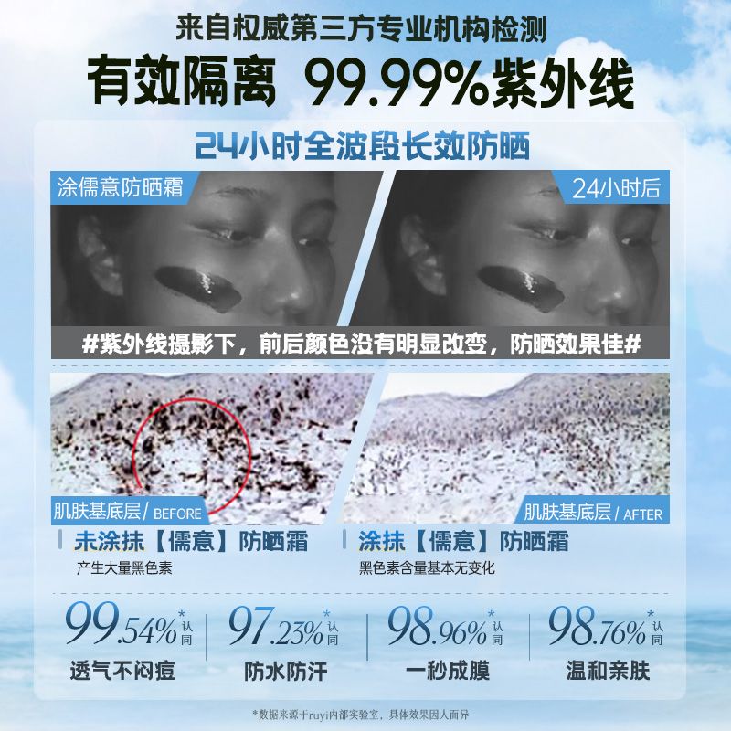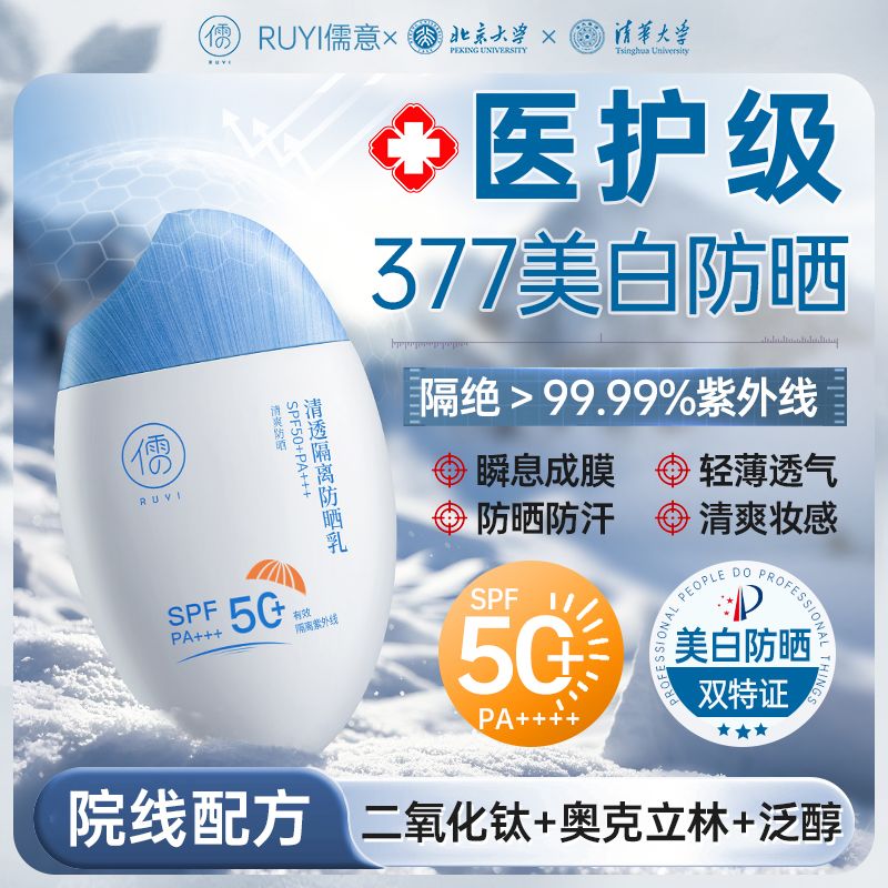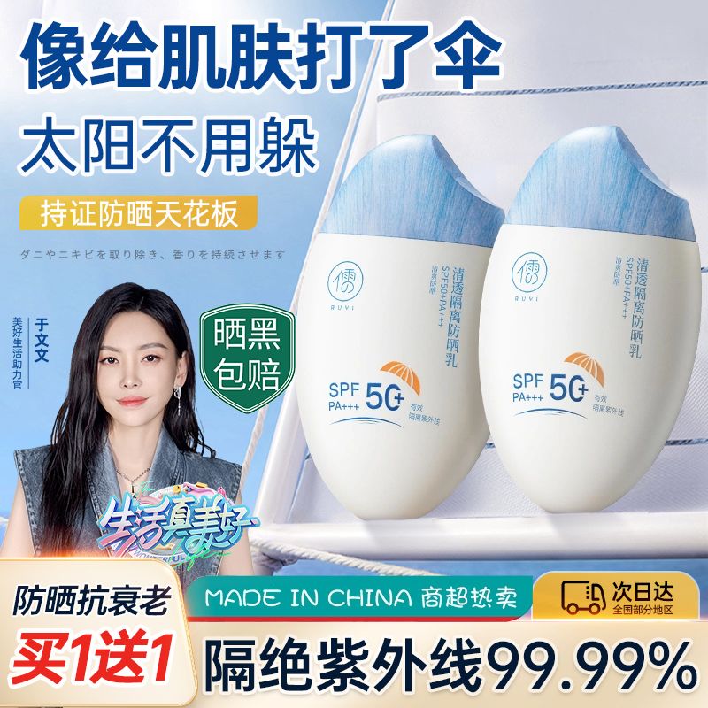 医研级儒意防晒霜乳50倍防紫外线美白清爽防水防汗敏肌军训学生党