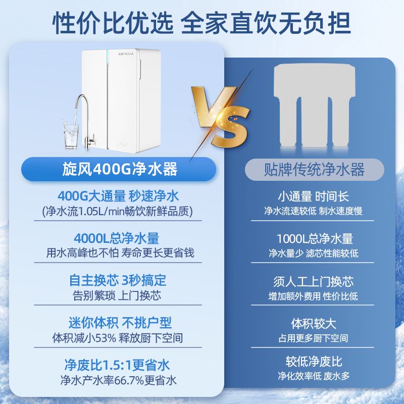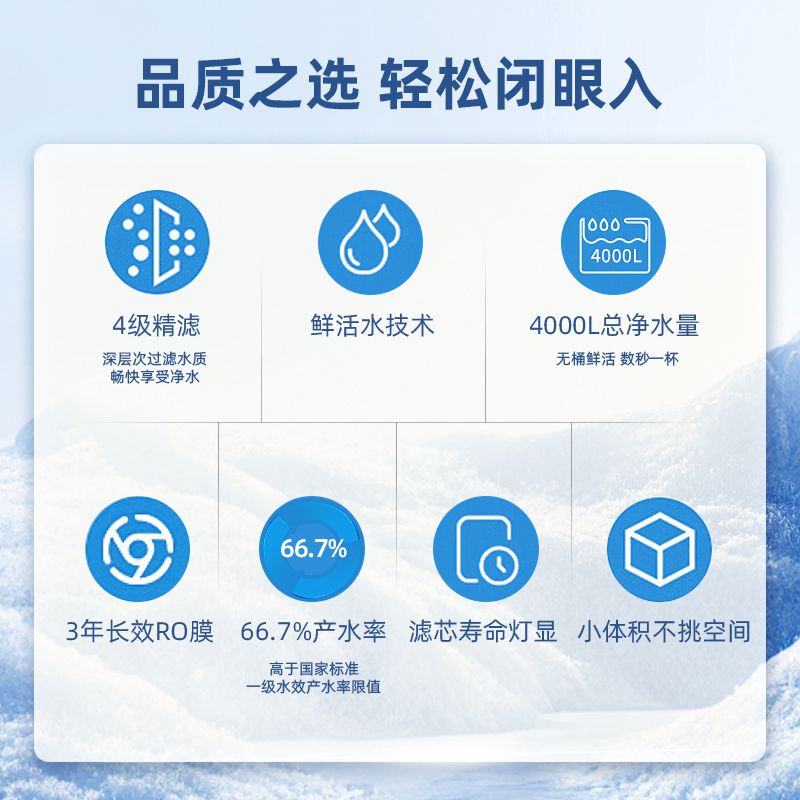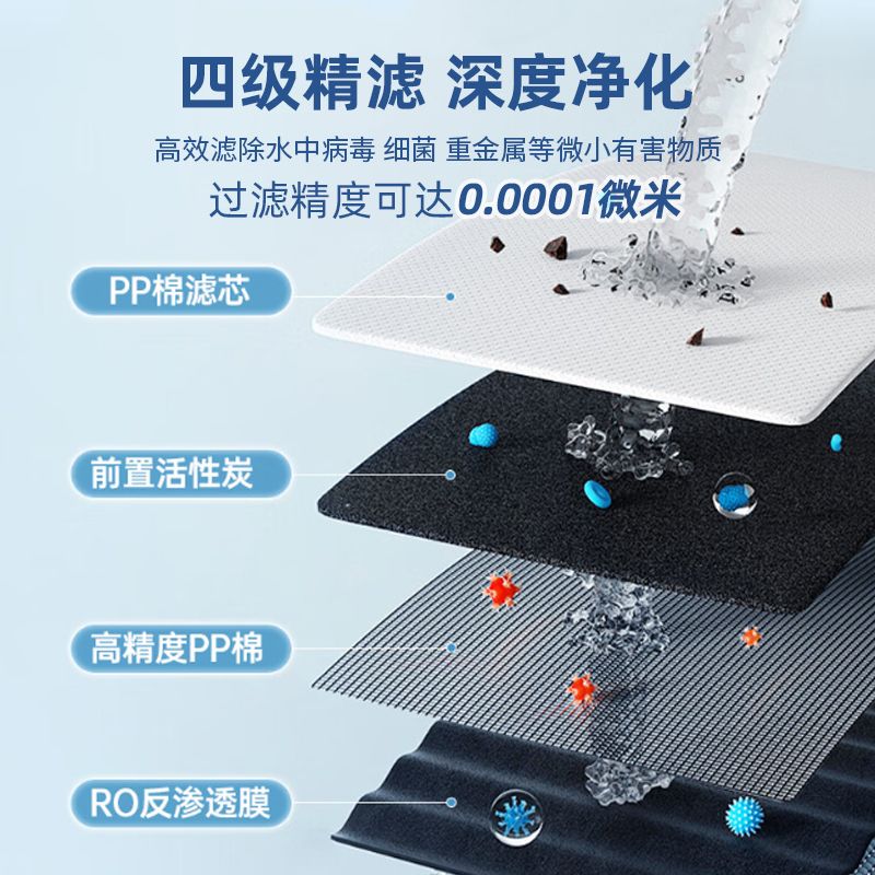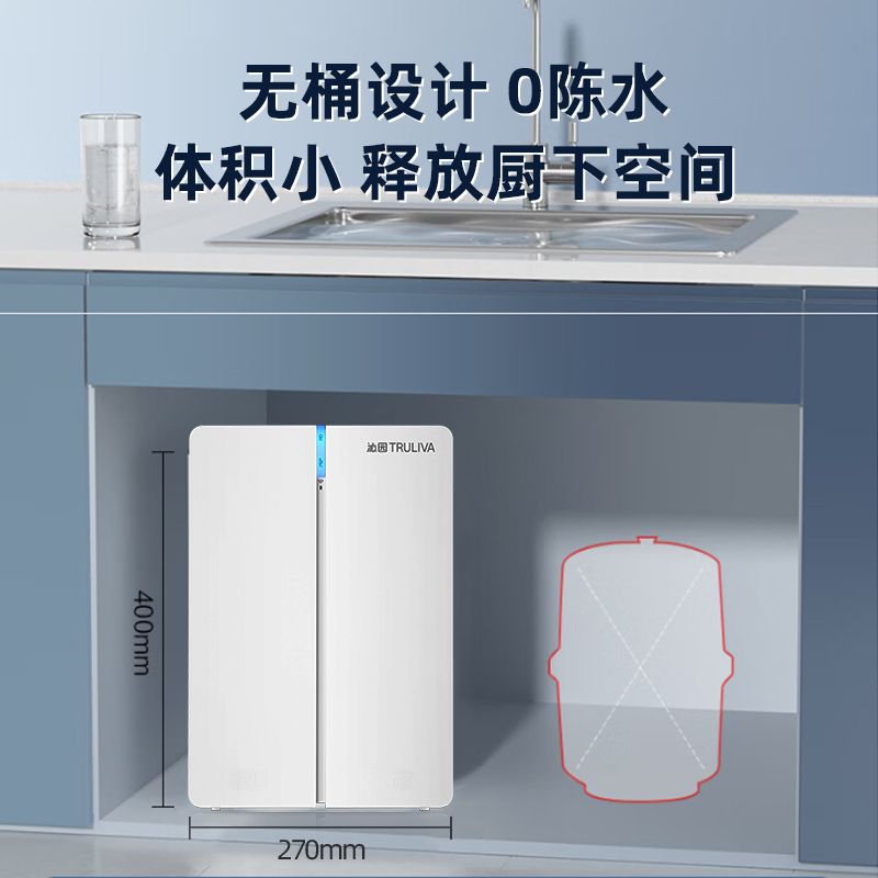 沁园家用厨房小体积净水器纯水机反渗透3年RO智能直饮净水机过滤