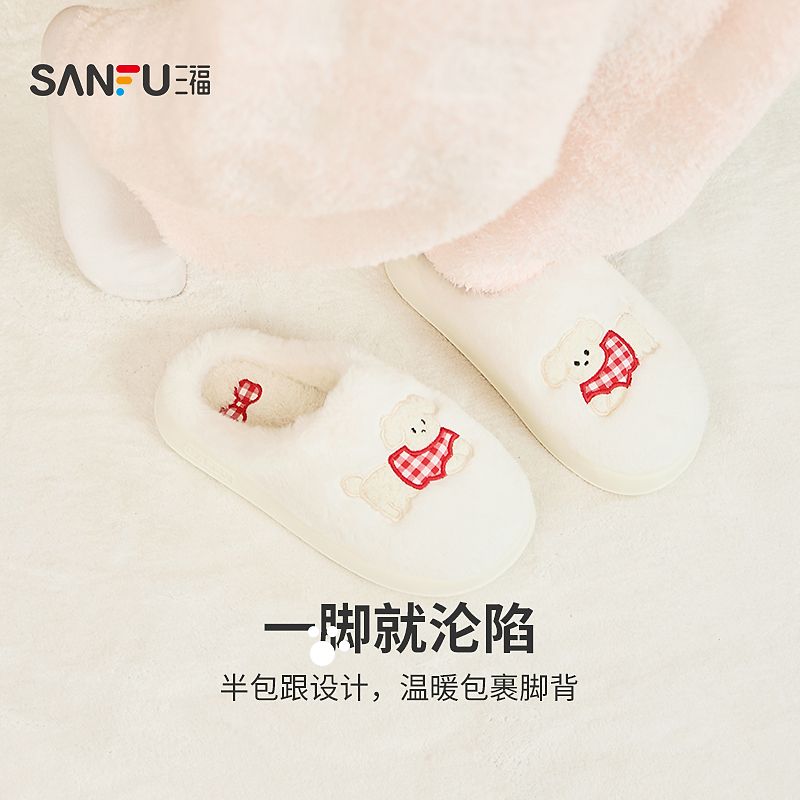 三福居家保暖多款半包拖 生活日用家居棉鞋毛绒拖鞋846283