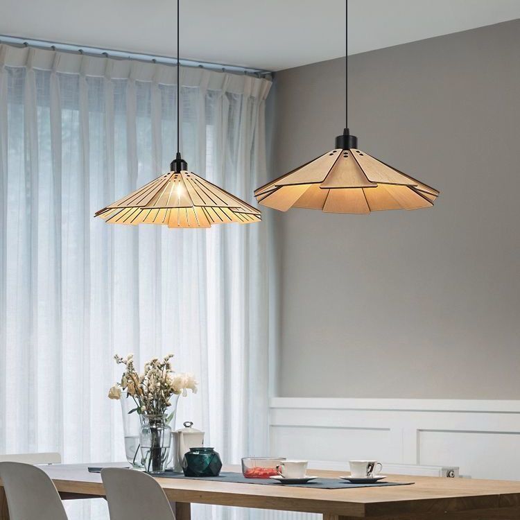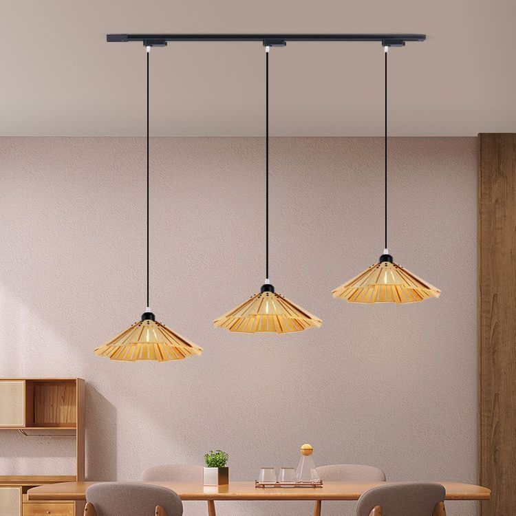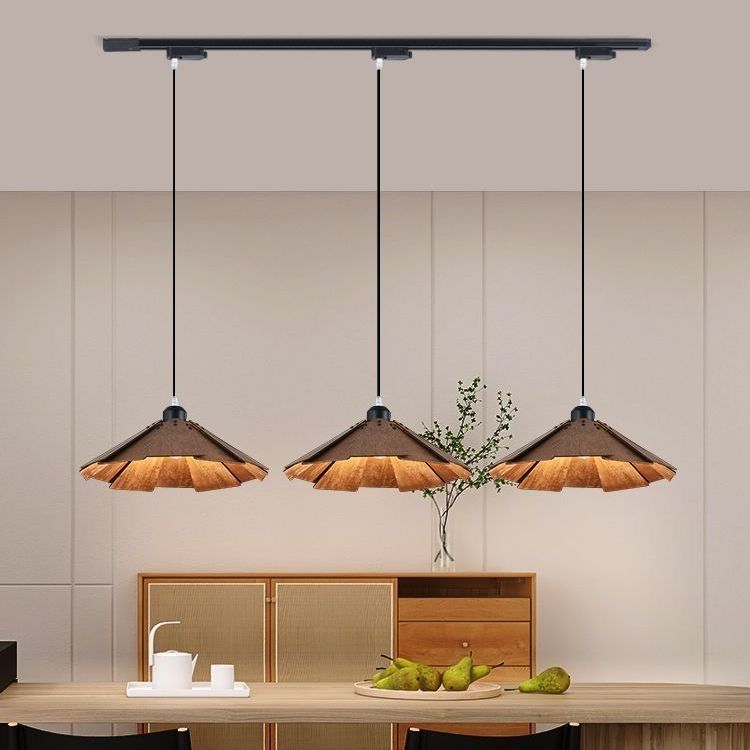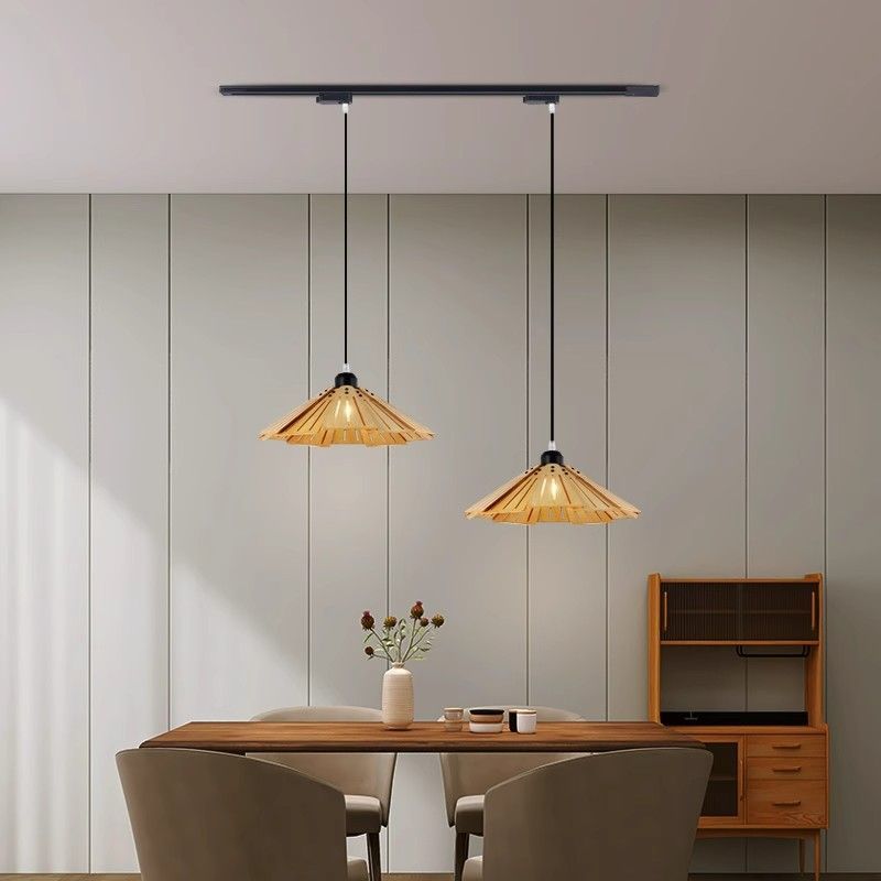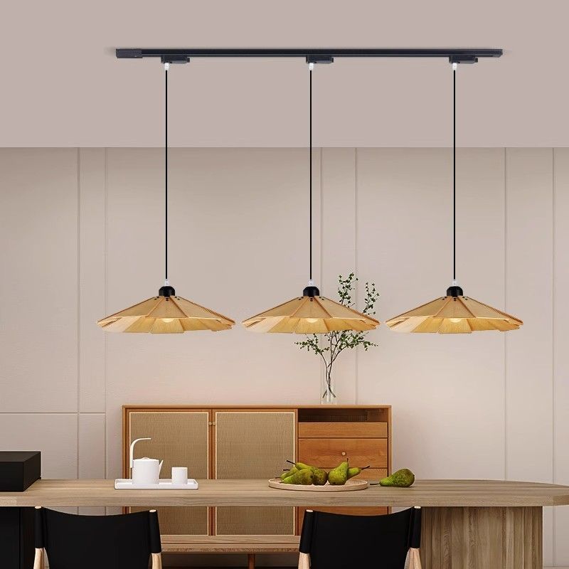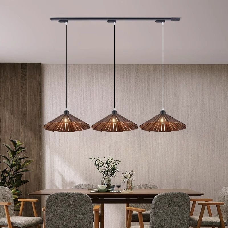 餐厅灯简约艺术日式复古侘寂风创意滑轨原木餐桌吧台饭厅吊灯轻奢