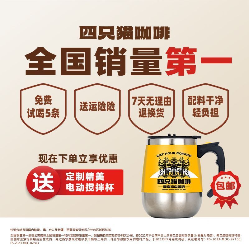 5袋150杯+送搅拌杯】拿铁蓝山特浓卡布燕麦拿铁 四只猫 速溶咖啡