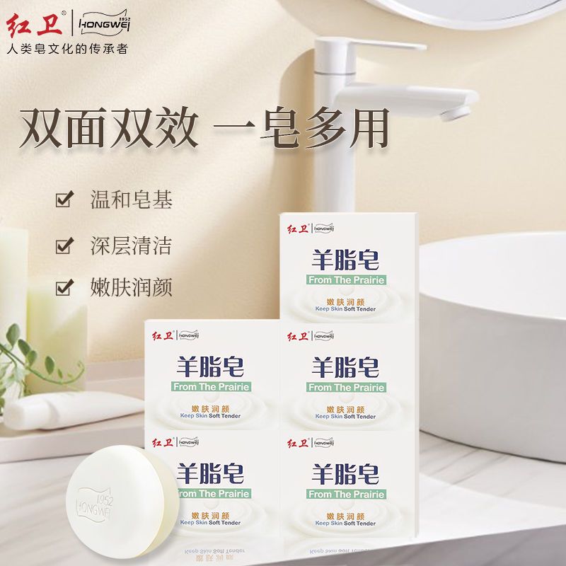 红卫4盒羊脂皂洗脸洗澡沐浴滋润肌肤温和羊奶皂包头红卫天然香皂
