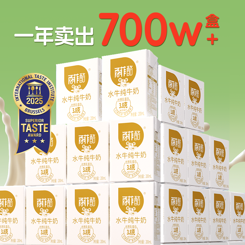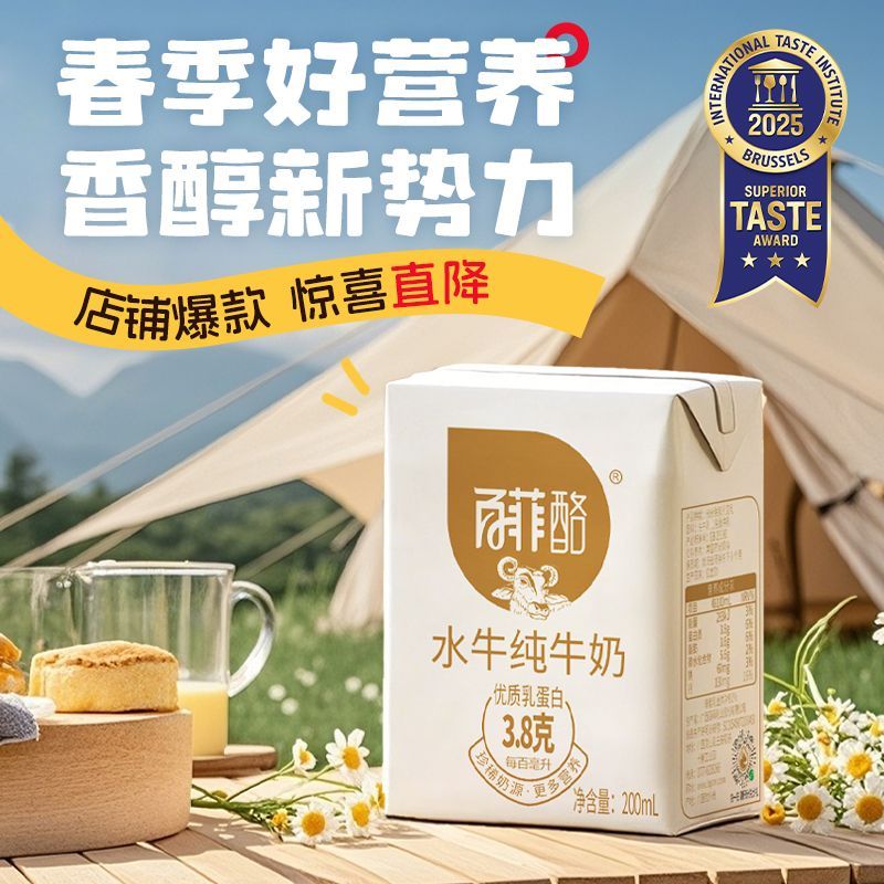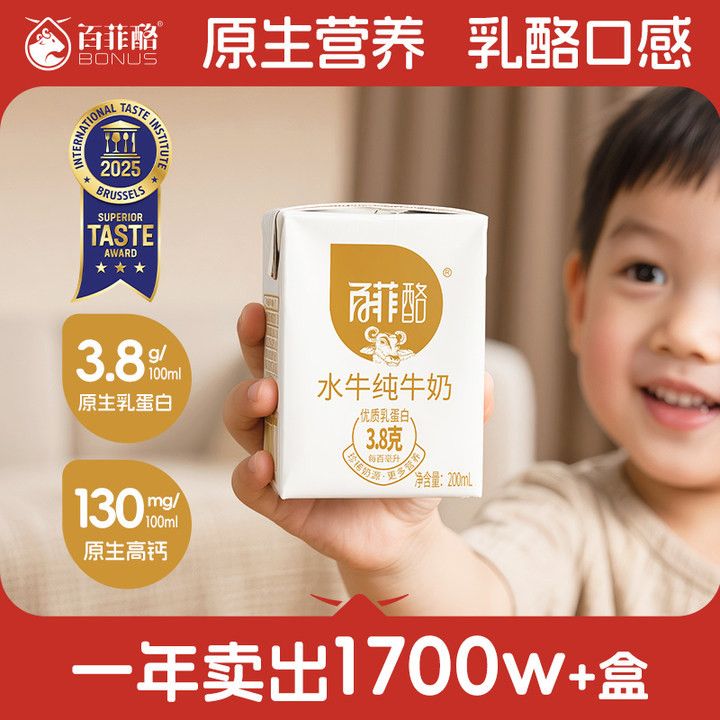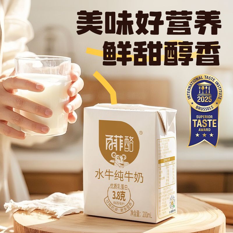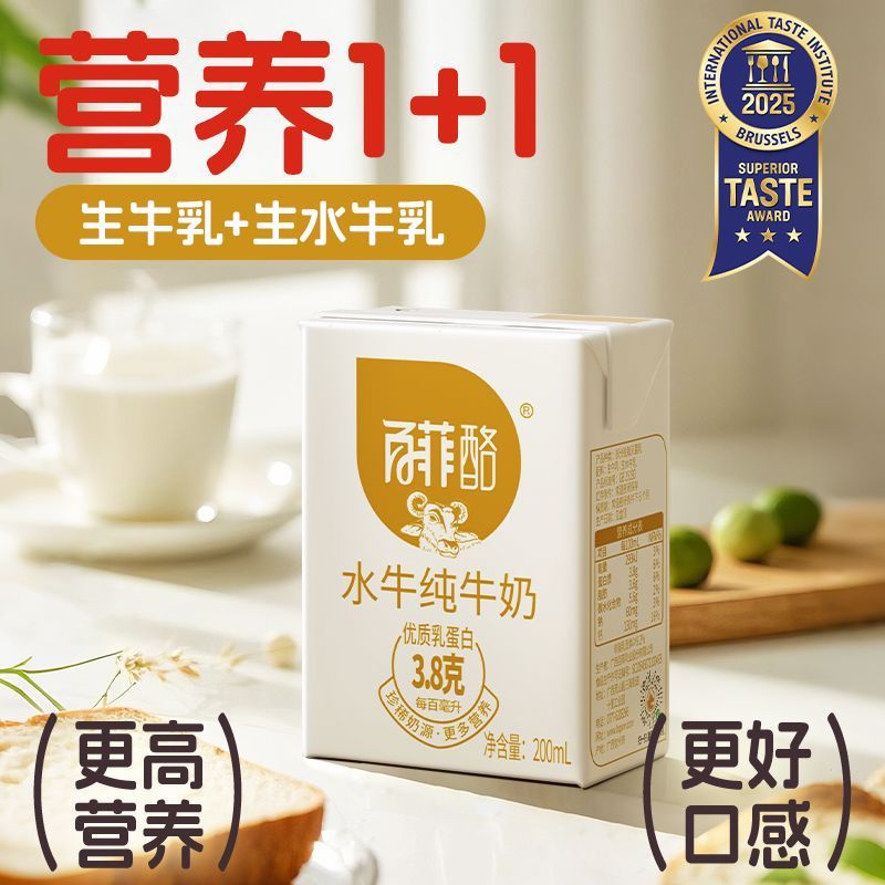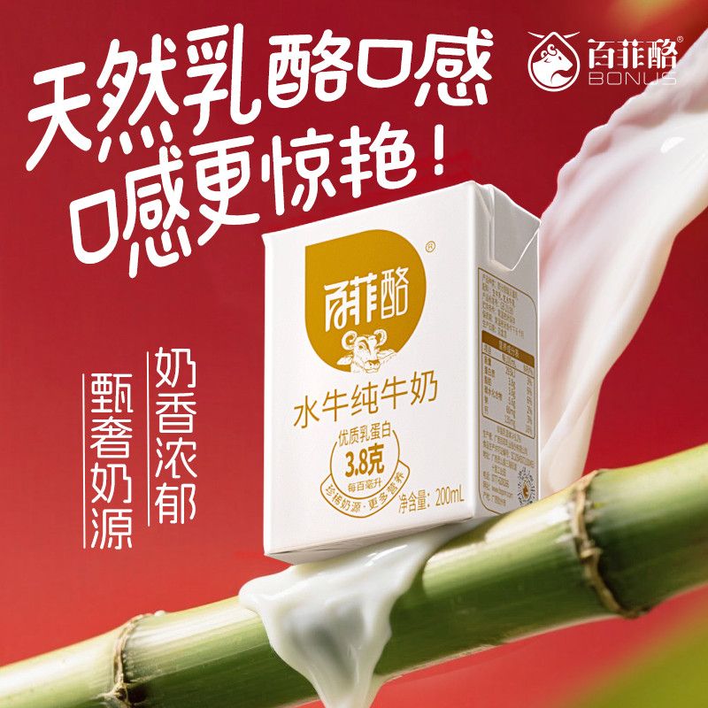 百菲酪水牛纯牛奶200ml*10盒*3箱整箱学生儿童营养健康早餐奶囤货