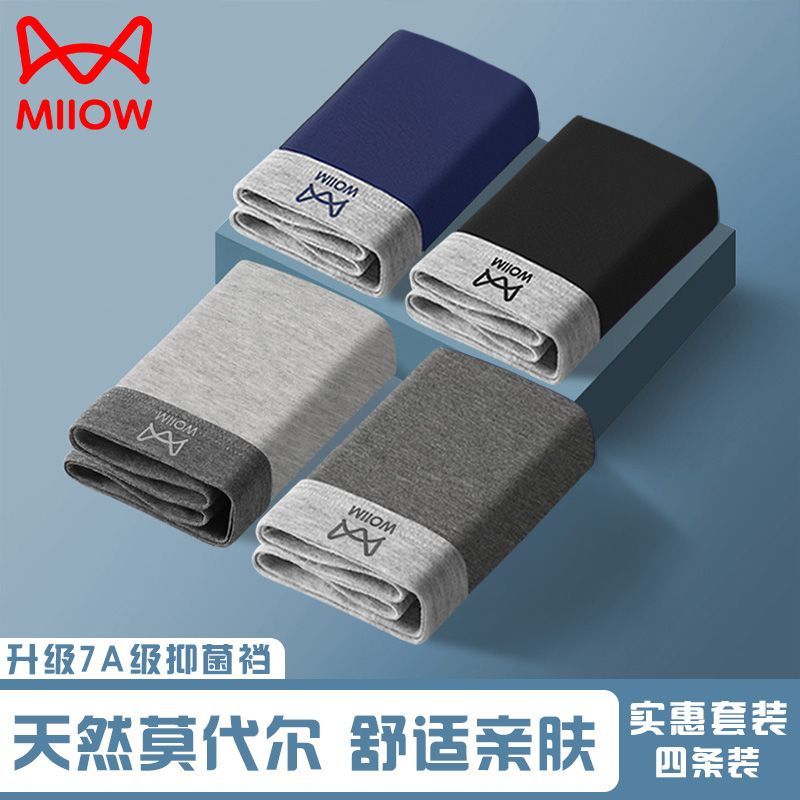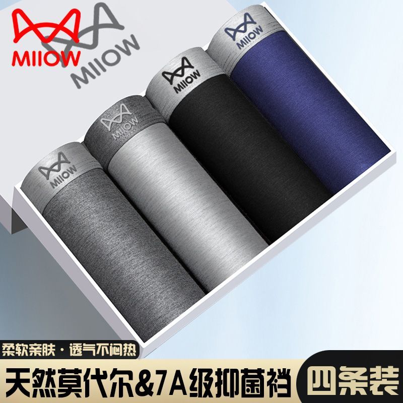 猫人抗菌内裤男士莫代尔平角裤抑菌四季中腰短裤透气男生四角裤衩