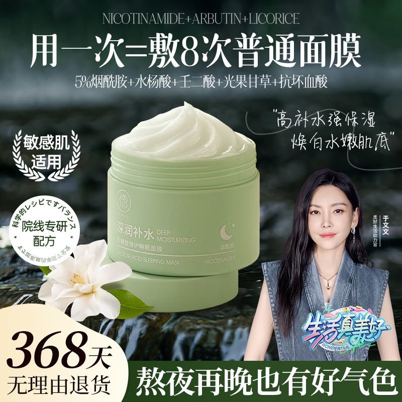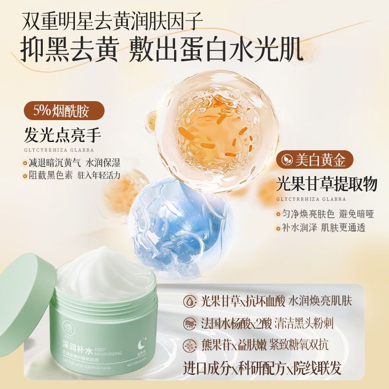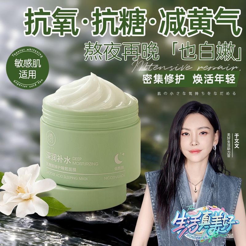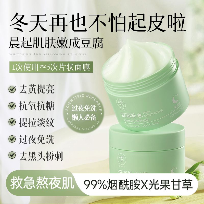 儒意乳糖酸免洗睡眠面膜补水保湿抗衰老修护熬夜提亮去黄气抗氧化