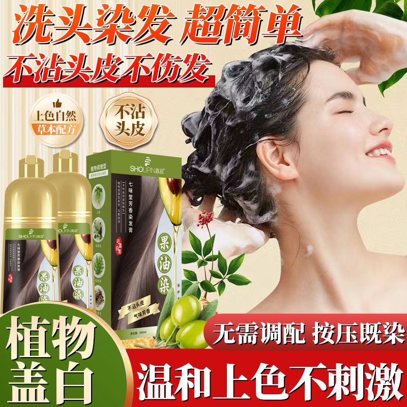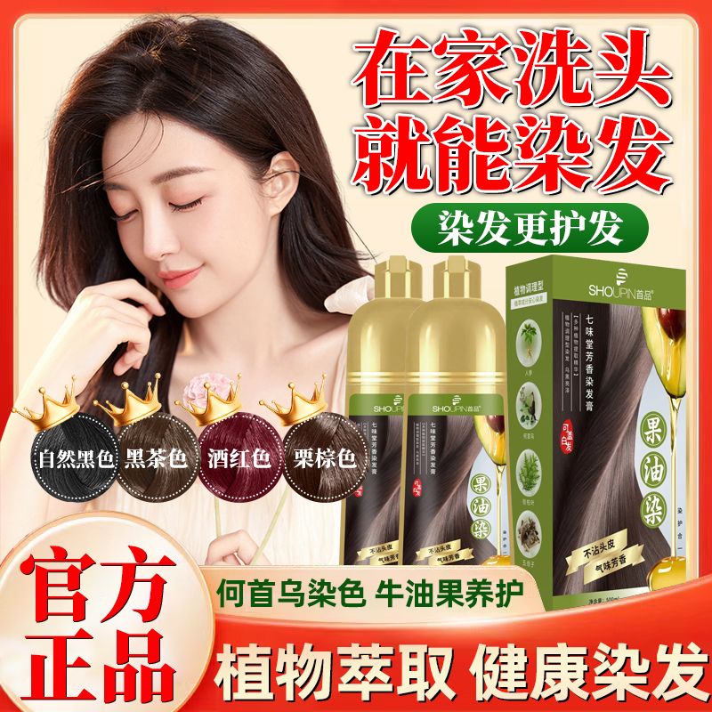 首品果油染发膏瓶装染发膏植物萃取男女通用自己在家染发遮盖白发