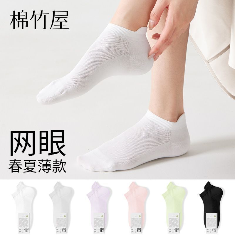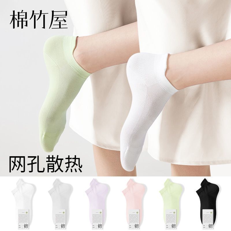 【8双】棉竹屋袜子女短袜夏季薄款抗菌网眼透气提耳护跟吸汗防臭