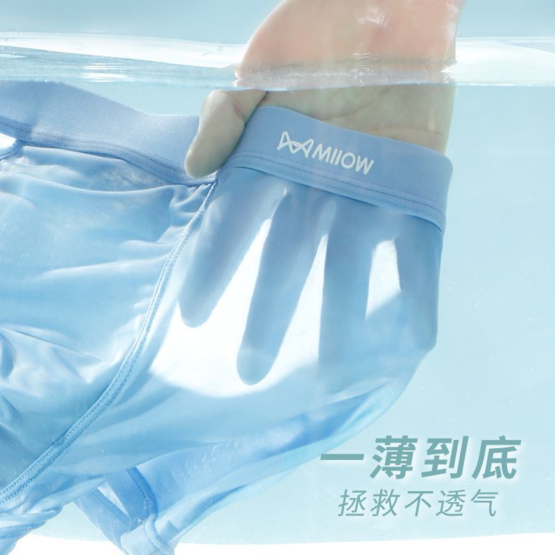 猫人冰丝男士内裤运动透气速干夏季大码抑菌平角男生抗菌四角短裤