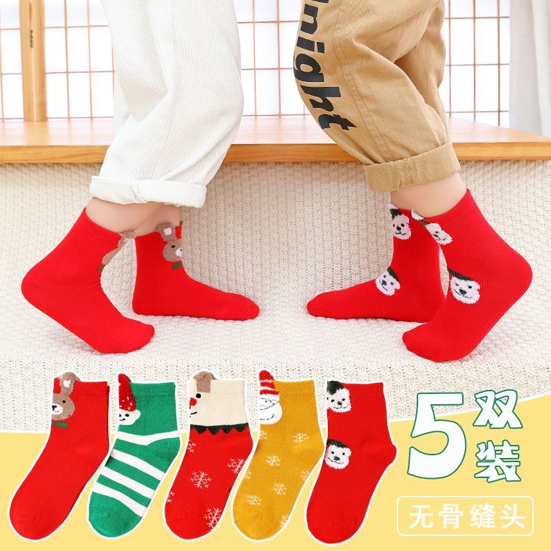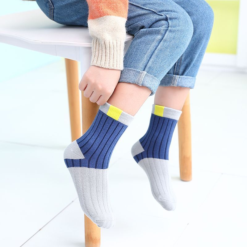 巴帝5双装春秋冬款纯色棉儿童袜子男女童中筒袜1-18岁小孩学生