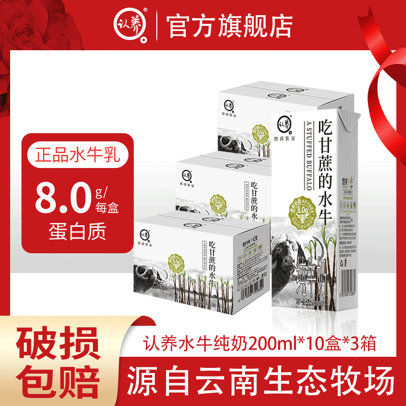 【11月产】认养吃甘蔗的水牛奶整箱200ml*10盒*3箱营养早餐纯牛奶