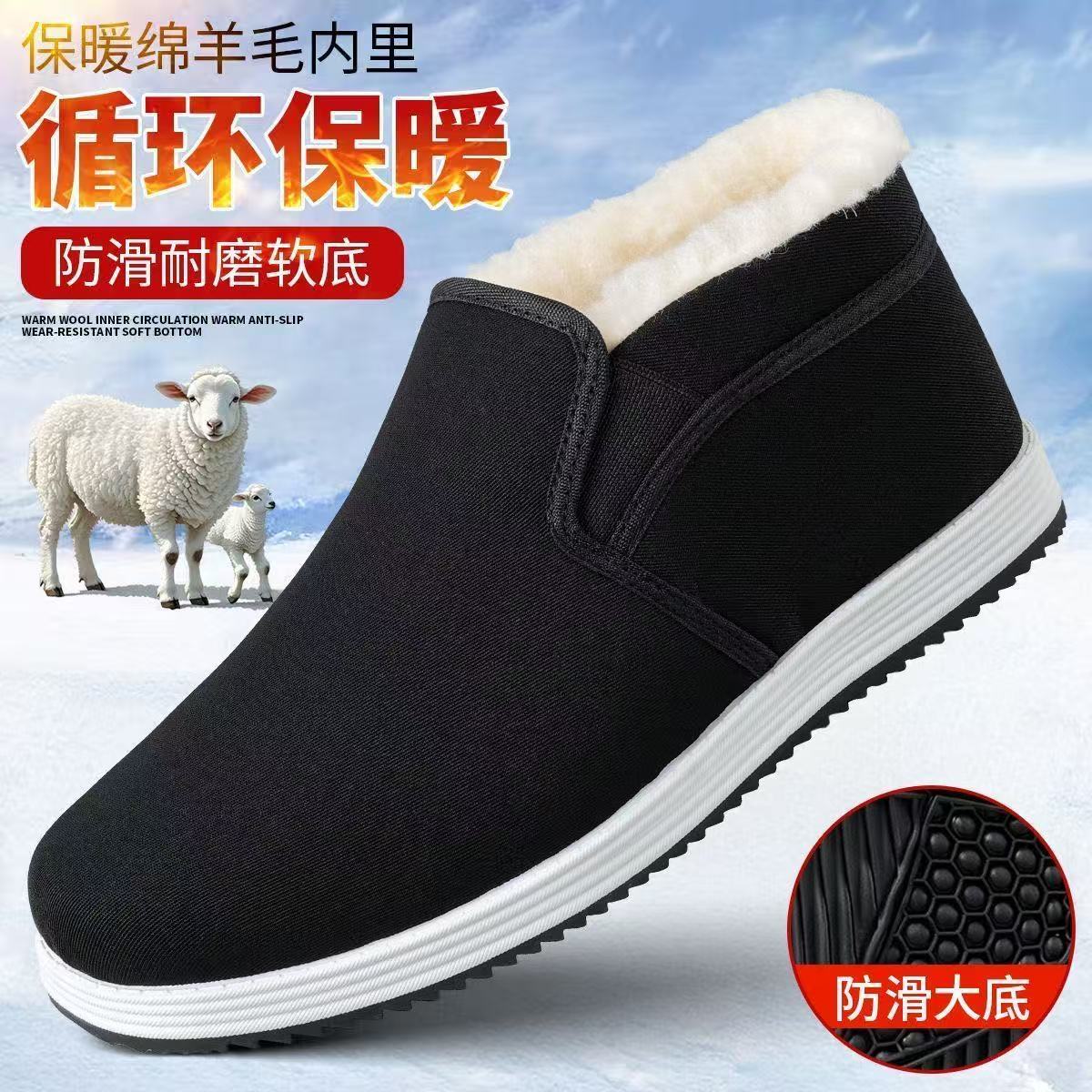 2025冬季棉靴北京雪地棉鞋防滑加绒加厚脚蹬耐磨休闲爸爸保暖