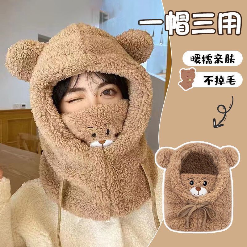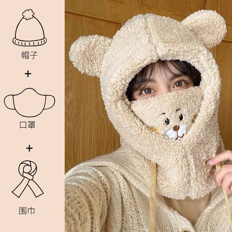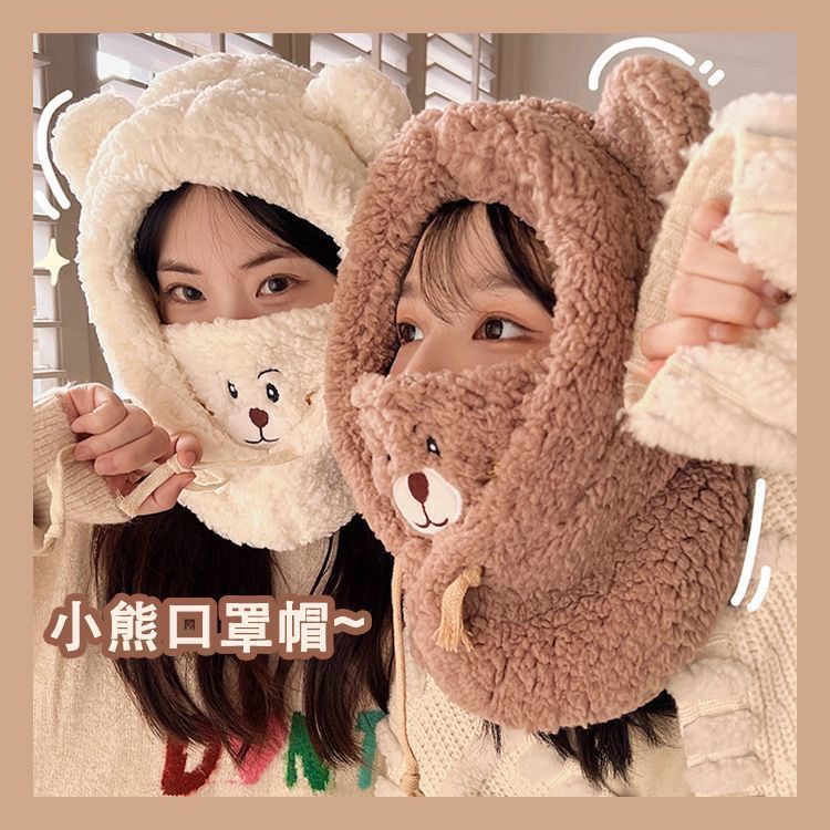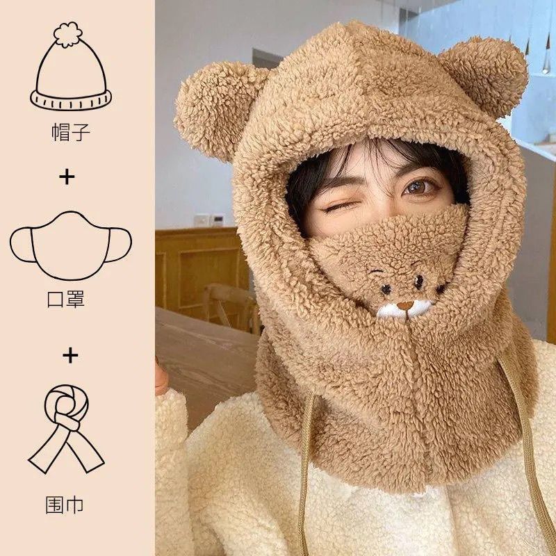 小熊可爱口罩帽子围巾冬季一体防风冬天保暖骑车护耳围脖秋冬【3天内发货】