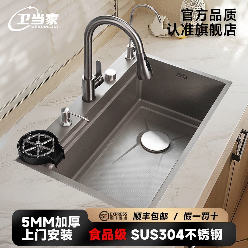 卫当家用特厚sus304不锈钢厨房水槽压纹洗菜盆池洗碗池加厚大单槽