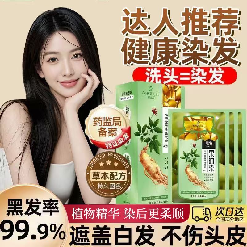 首品果油染独立袋装泡泡染发染发剂植物萃取男女通用在家遮盖白发