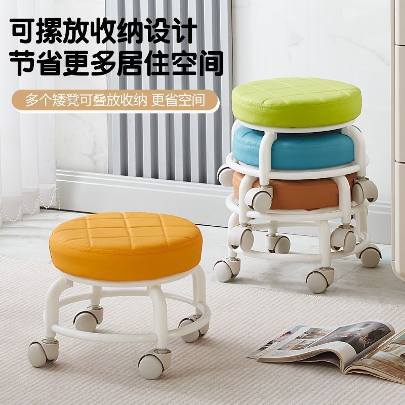 家用滑轮矮凳软坐万向轮耐用小凳子客厅移动儿童溜溜凳门厅换鞋凳