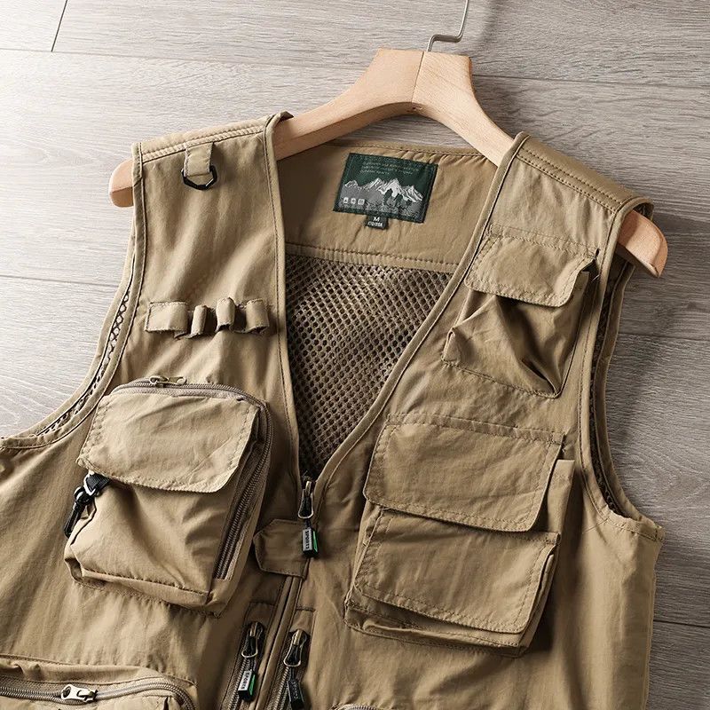 钓鱼马甲,机能工装风立体多口袋设计户外工装多口袋男士背心钓鱼