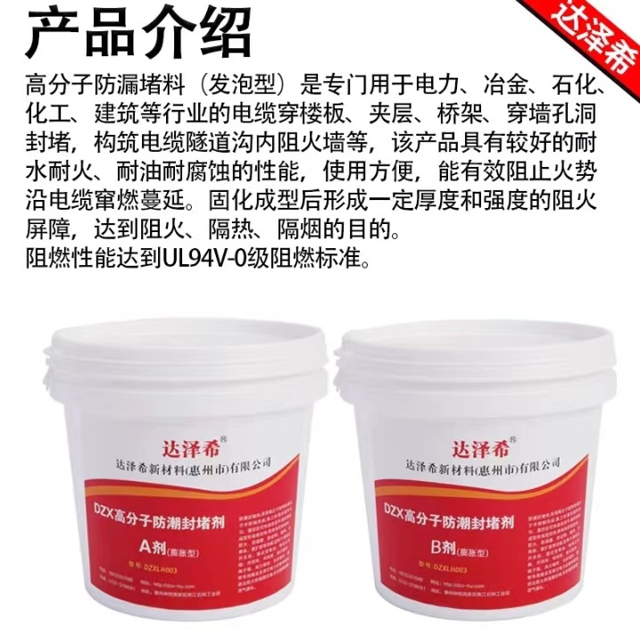 高分子防潮封堵剂发泡膨胀型封堵挤电缆沟电柜阻燃 防火封堵材料