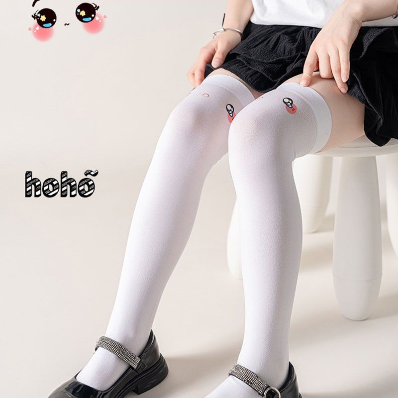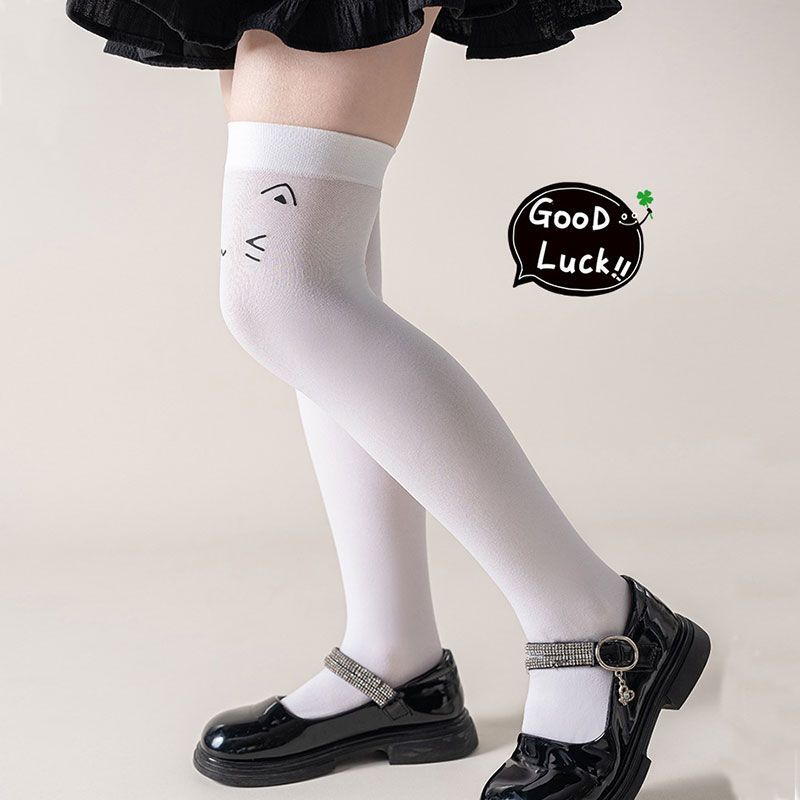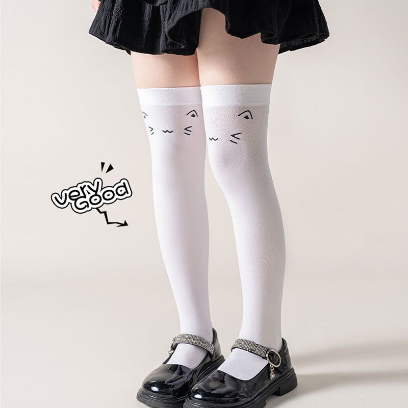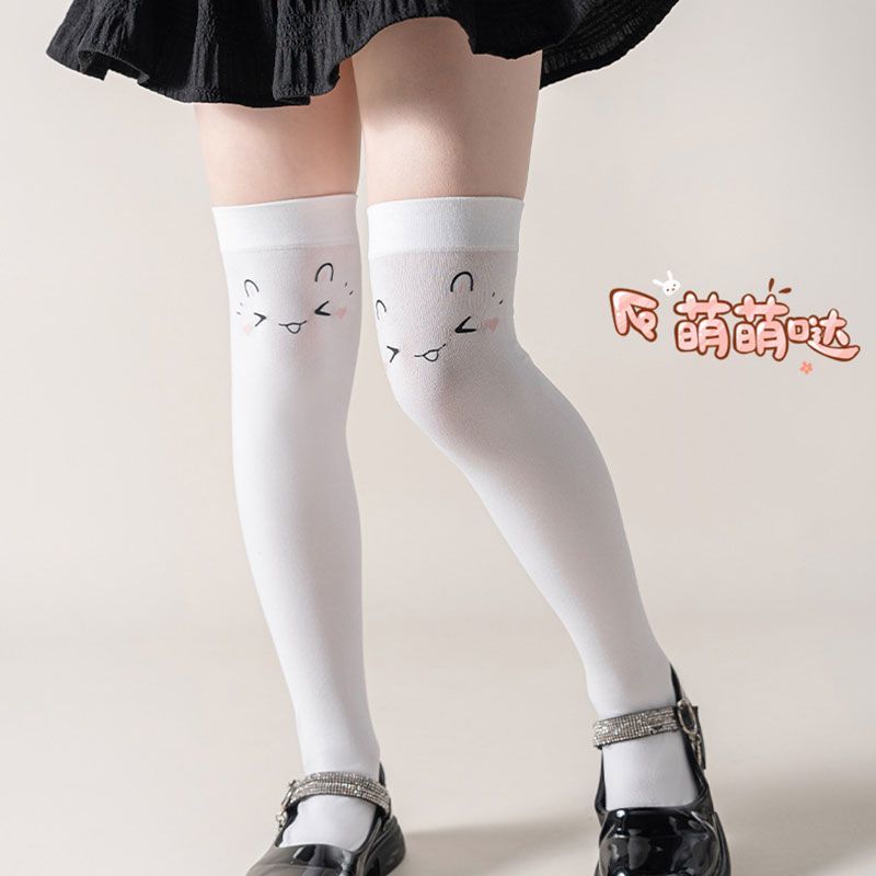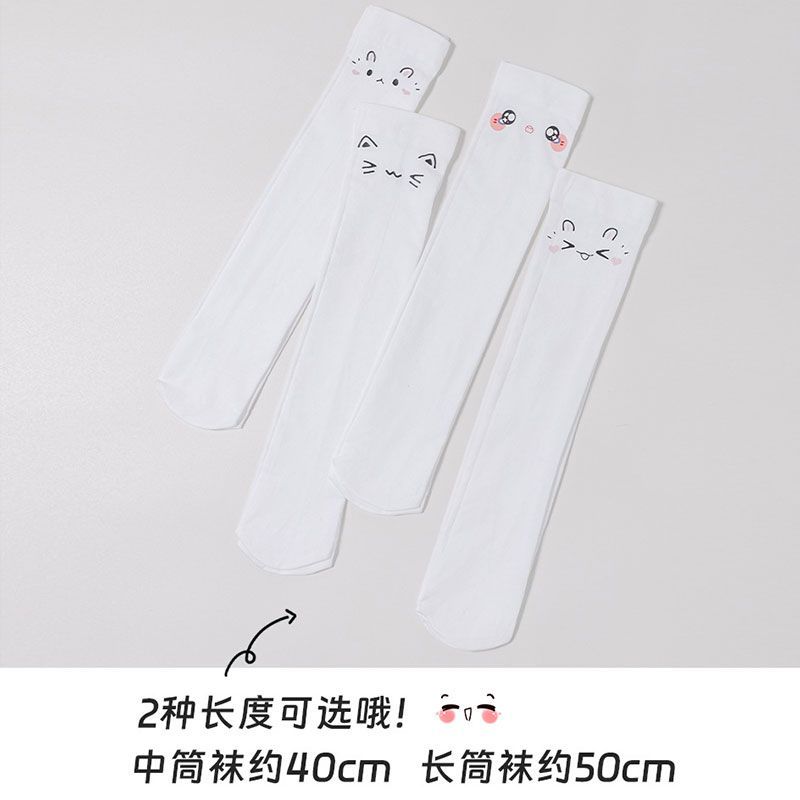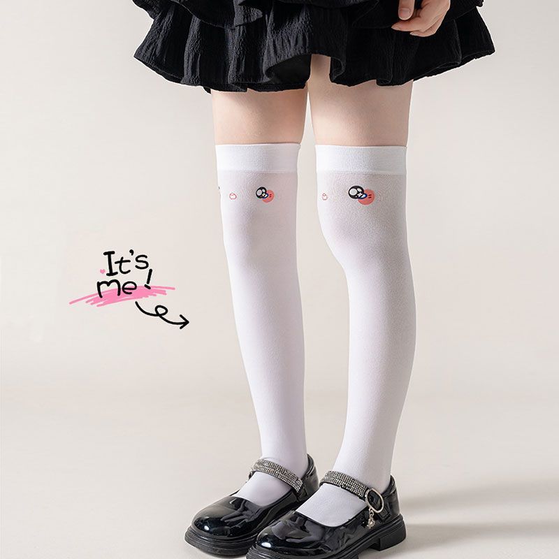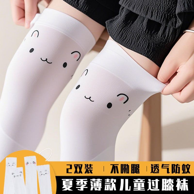女童长筒过膝袜夏季薄款白色卡通可爱儿童防蚊袜宝宝半截高筒袜子