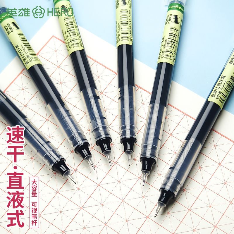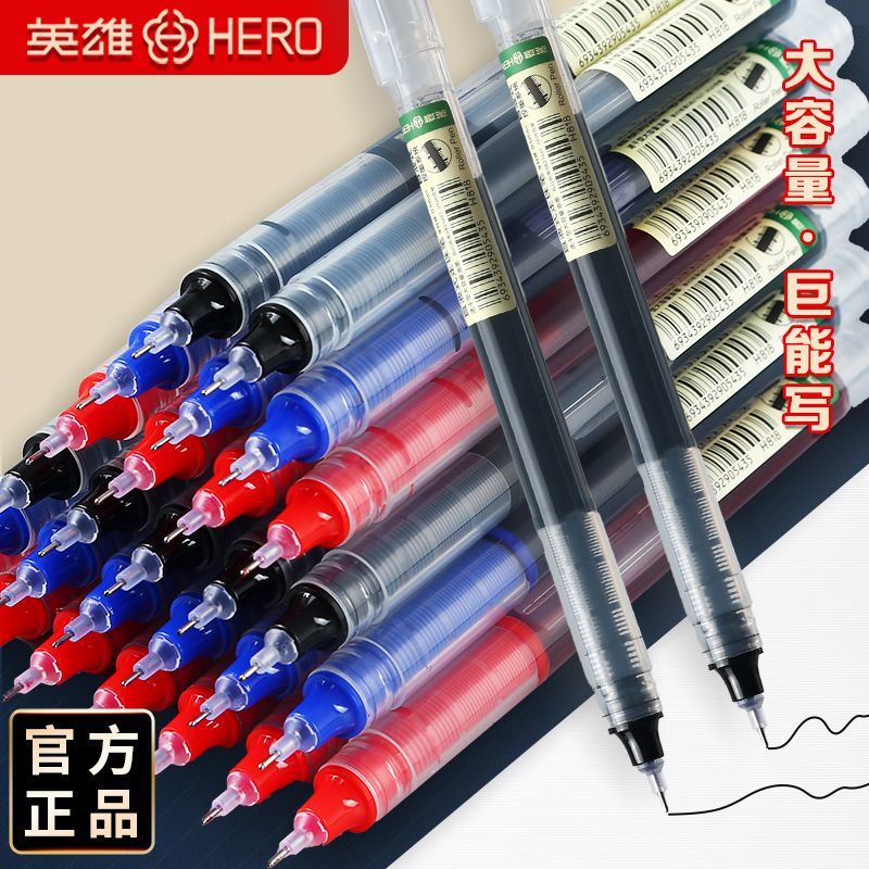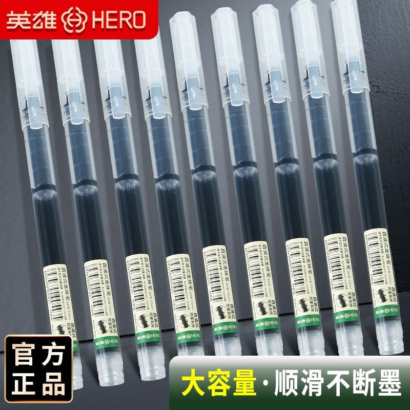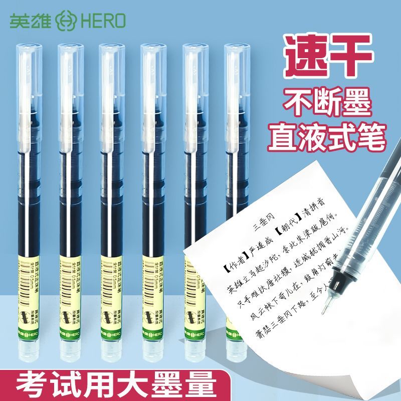 英雄中性笔直液式走珠笔速干0.5刷题笔大容量学生办公巨能写批发