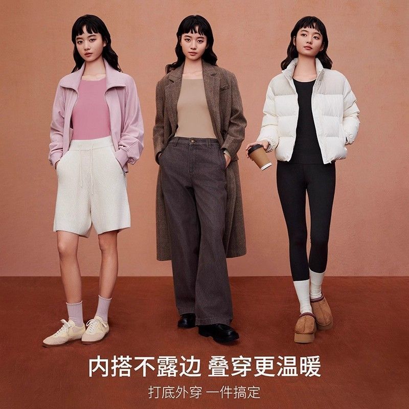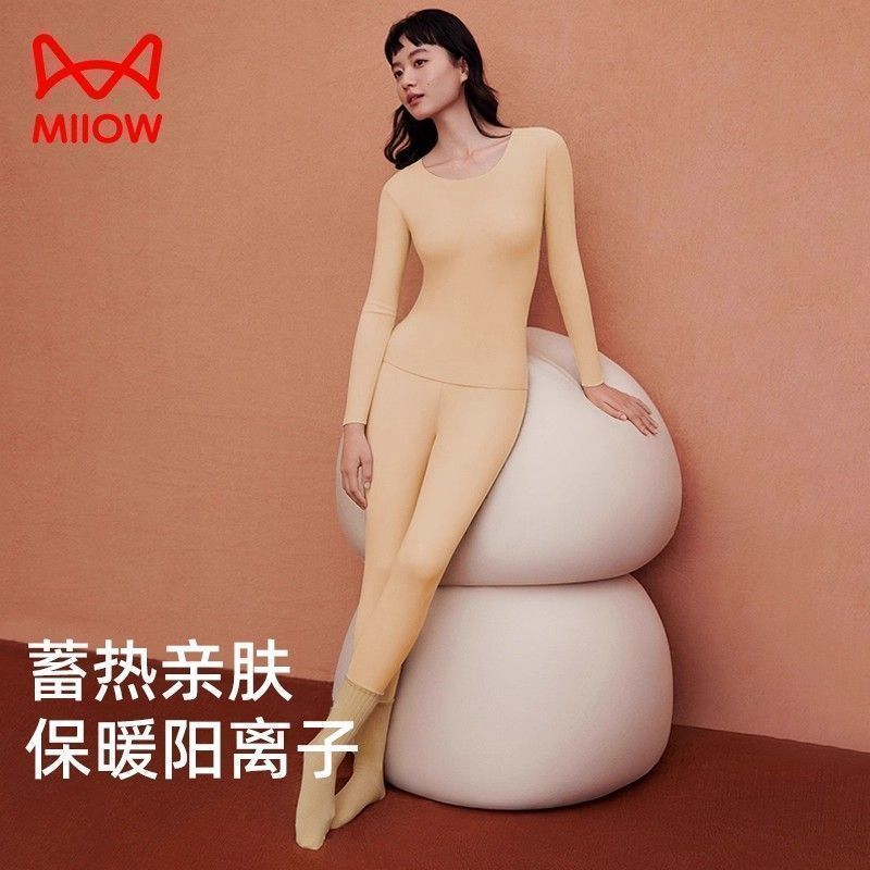 【猫人】无痕保暖内衣女秋冬季ab面双层打底衫新品秋衣秋裤套装