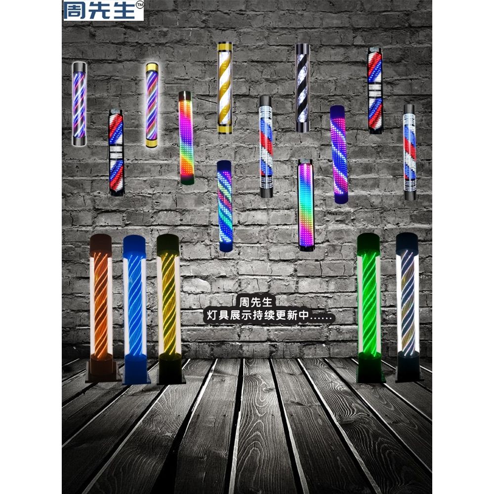 周先生美发转灯挂墙壁发廊标志灯理发店变色led七彩防水户外新款