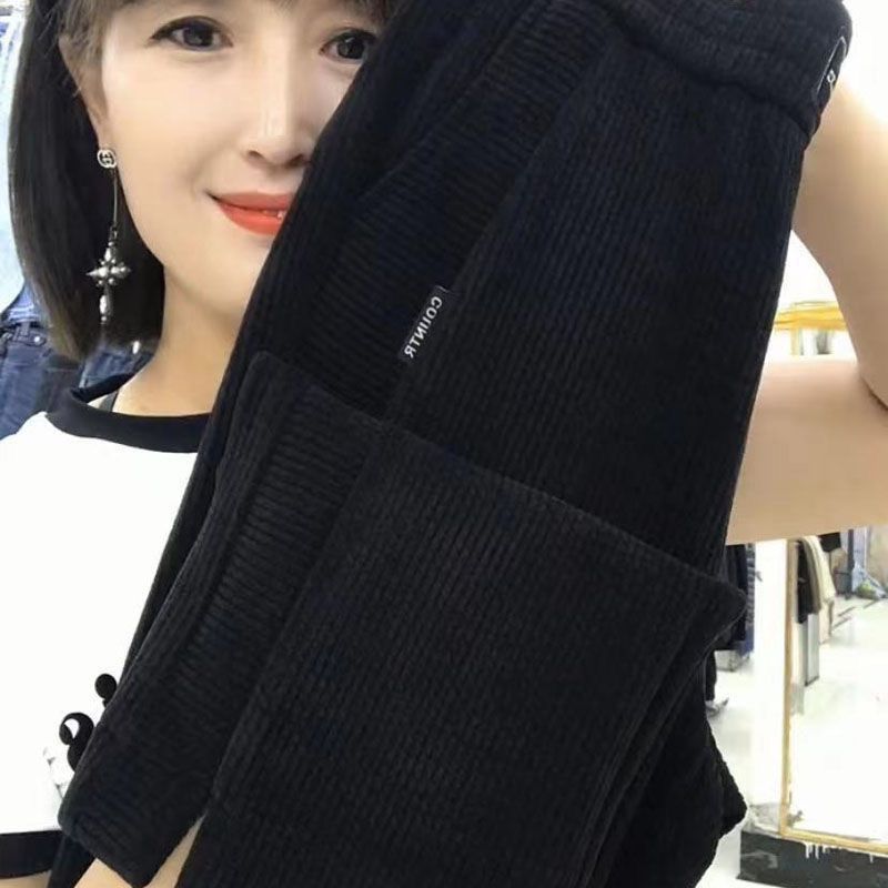 2025春季新款欧条绒面料休闲直筒裤洋气时尚百搭宽松高腰直筒裤