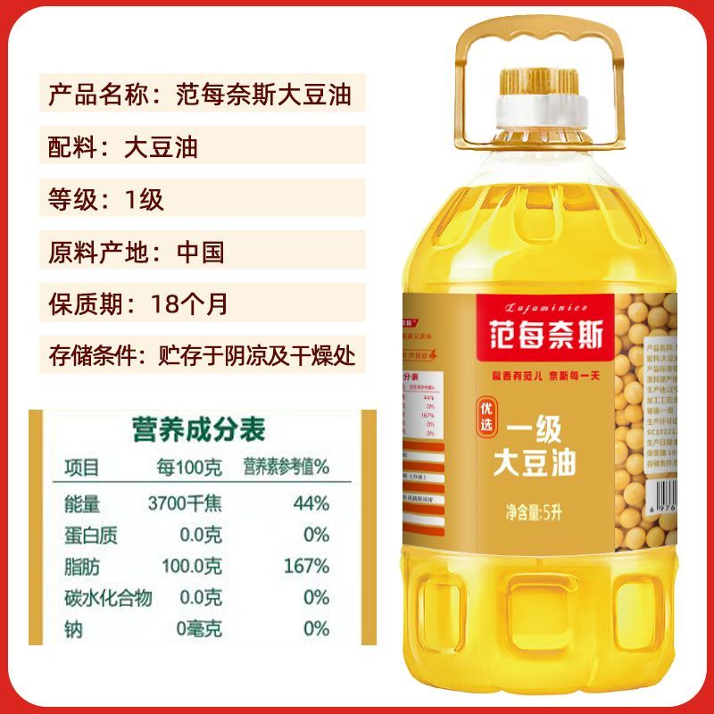 范每奈斯优选一级大豆油5L*4桶 家用大豆油食用油新日期