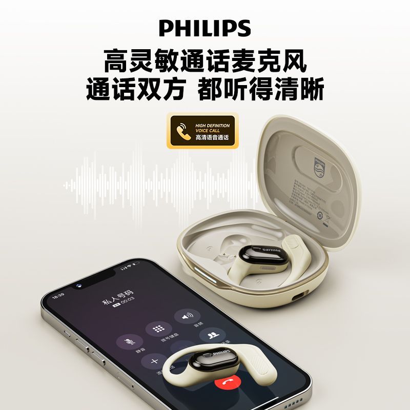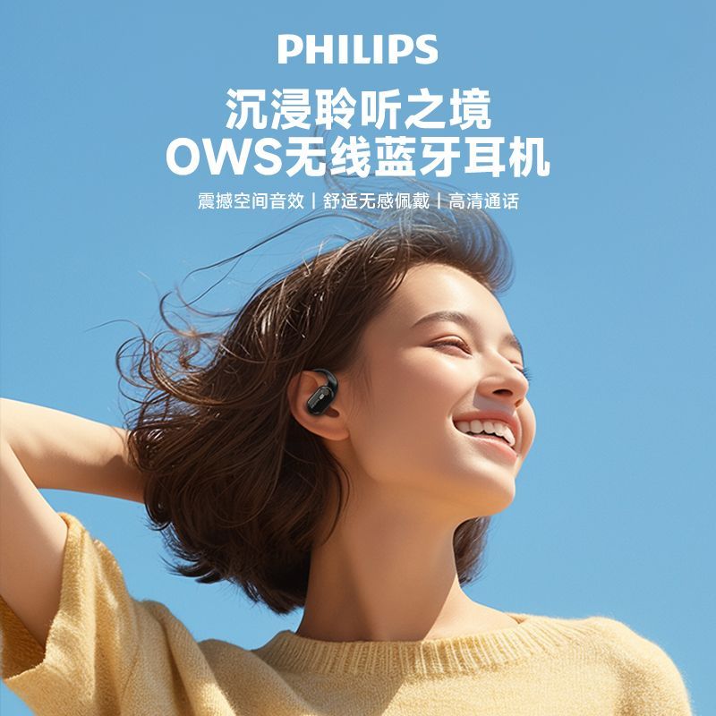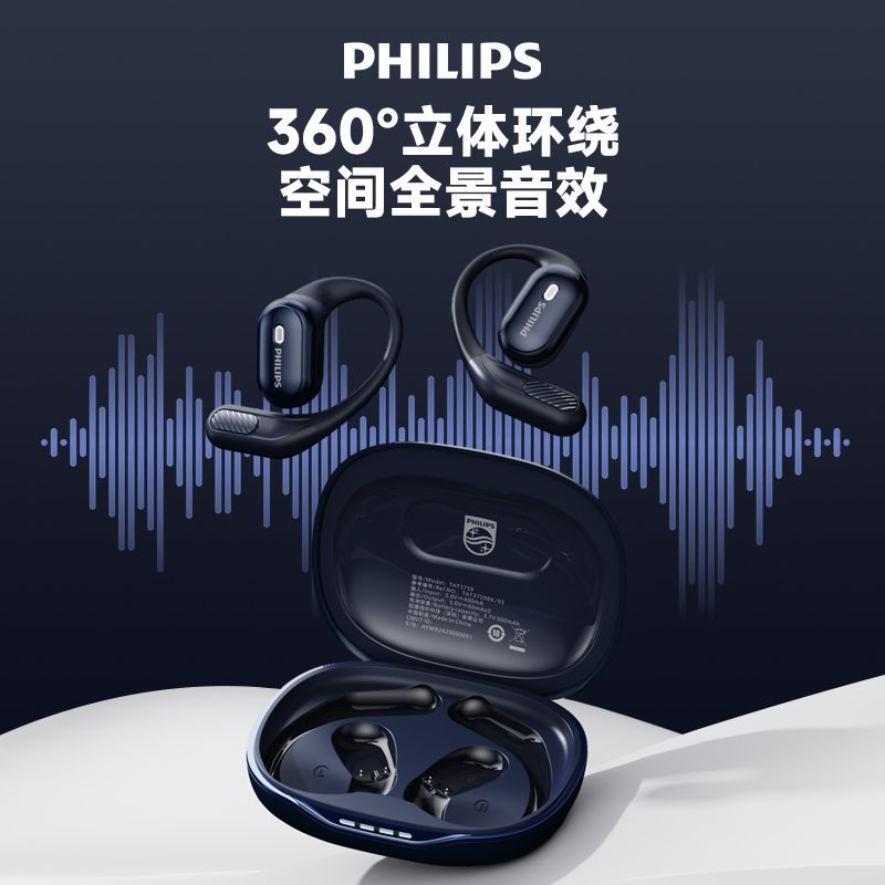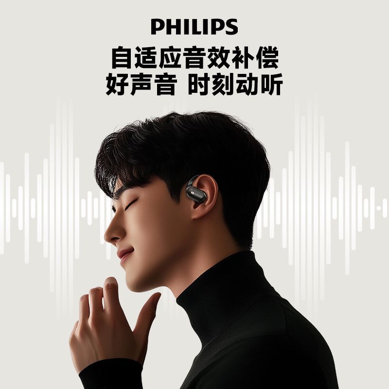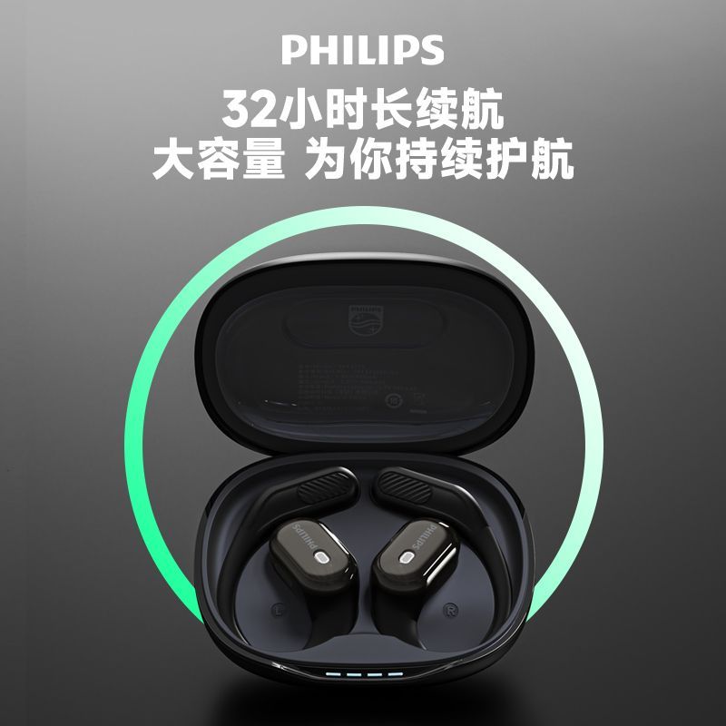 飞利浦挂耳式传导蓝牙耳机入耳气骨2024新款超长续航运动TAT3759
