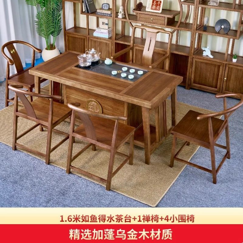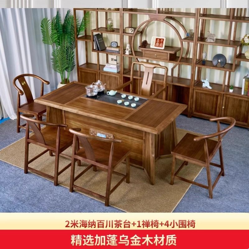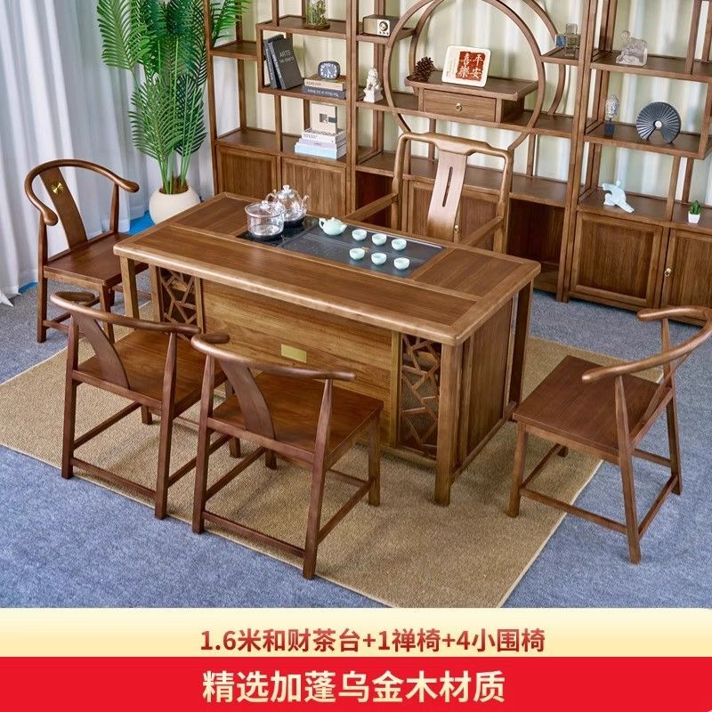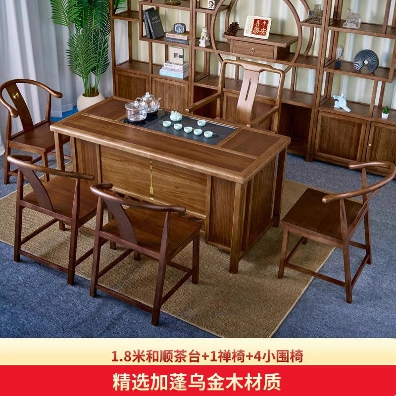 新中式乌金木办公组合家用实木茶几办公室功夫茶泡茶储物一体套装