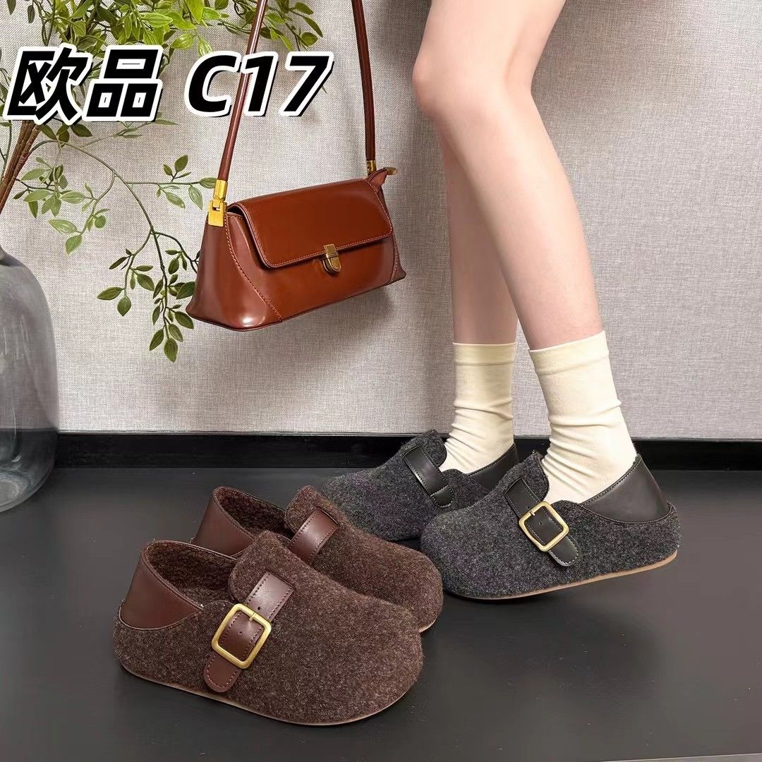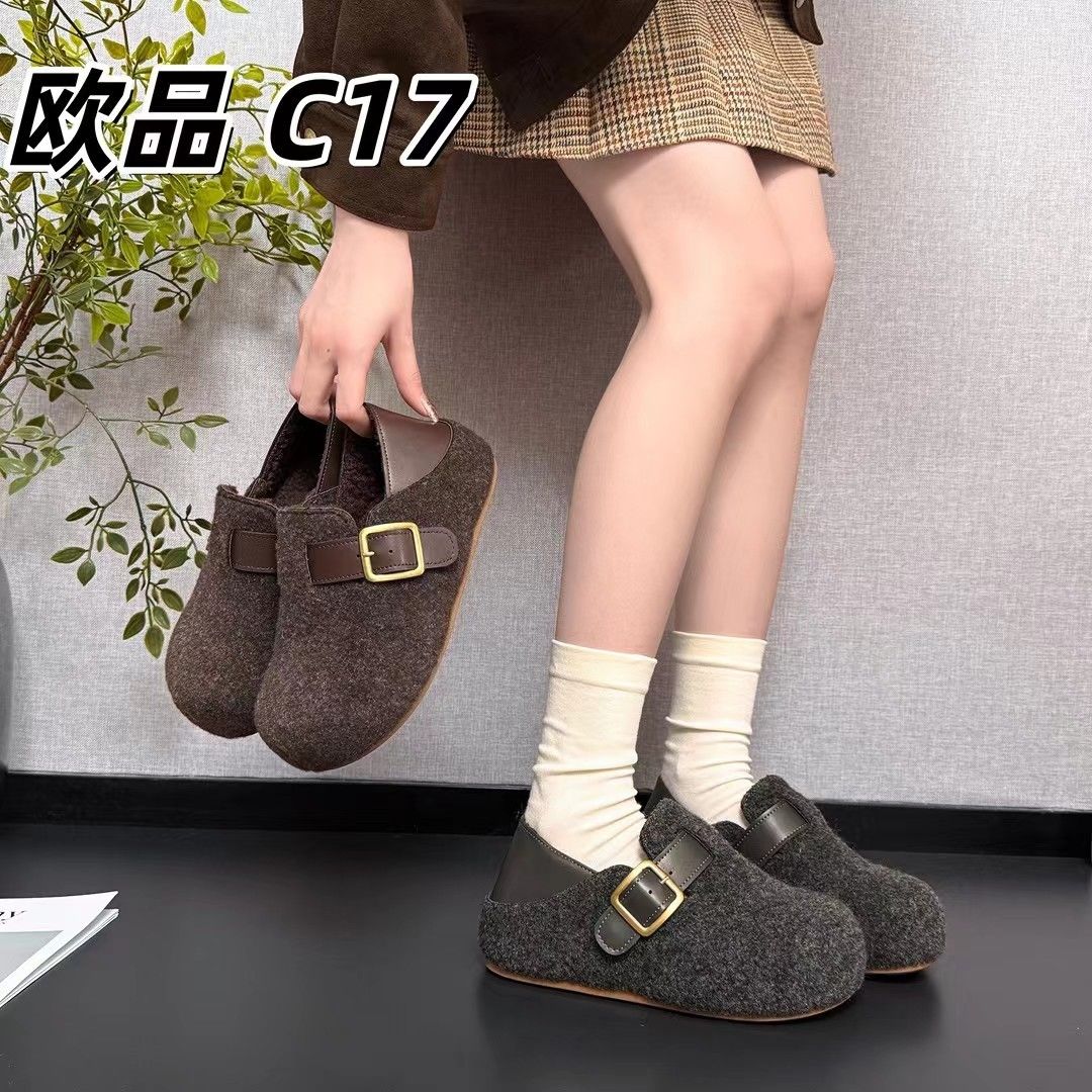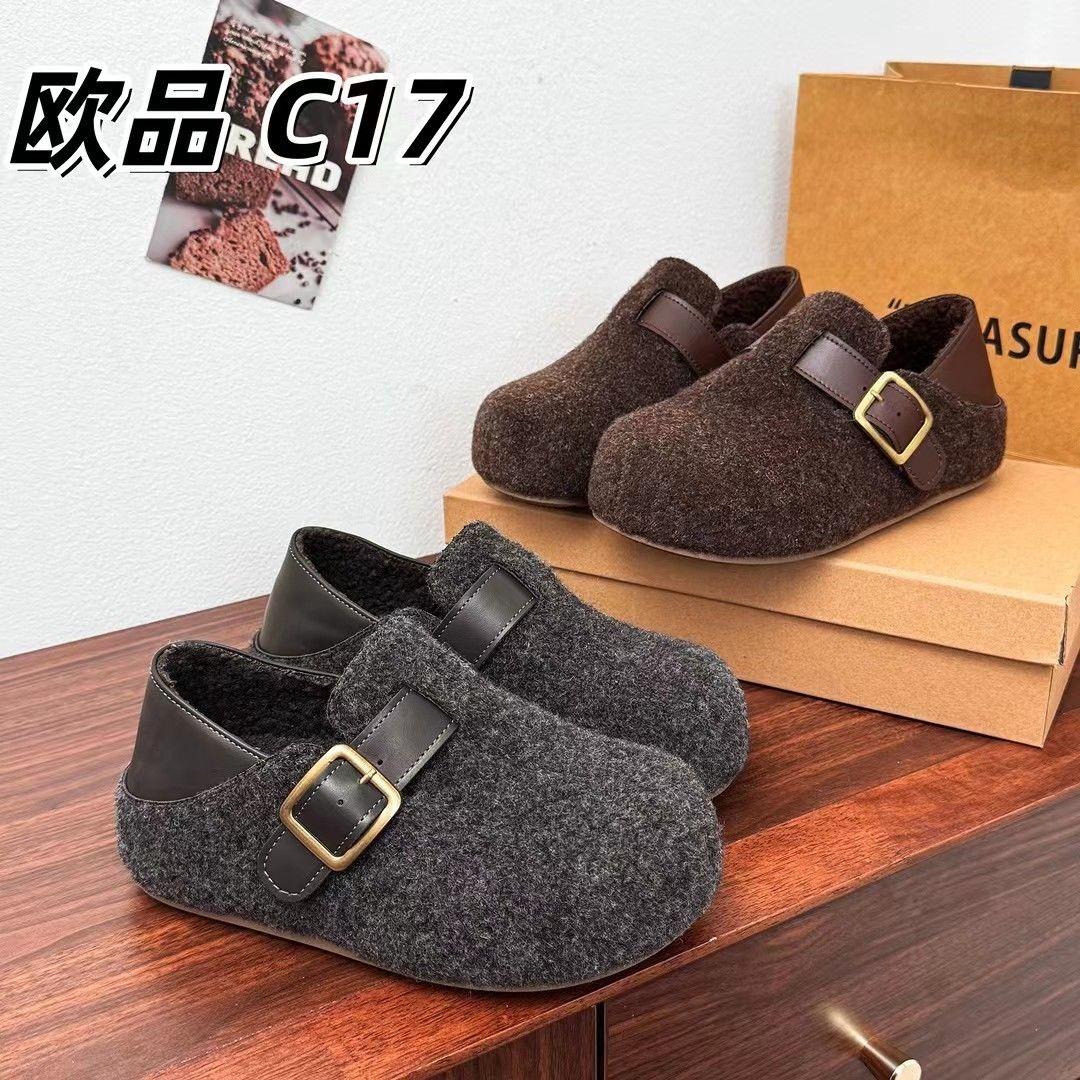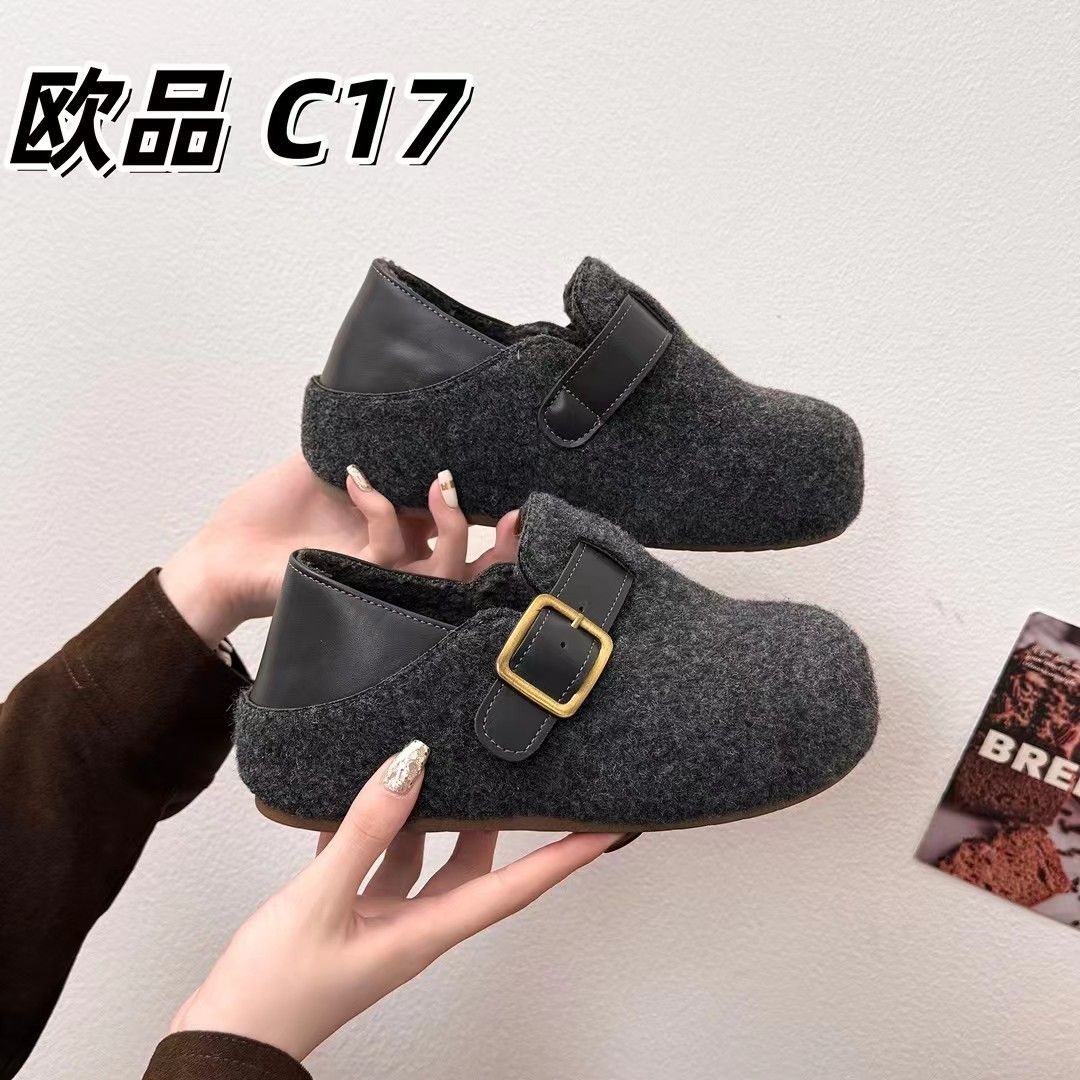 毛毛毛呢2025秋冬新款加绒保暖厚底脚蹬懒人鞋厚底勃肯棉鞋