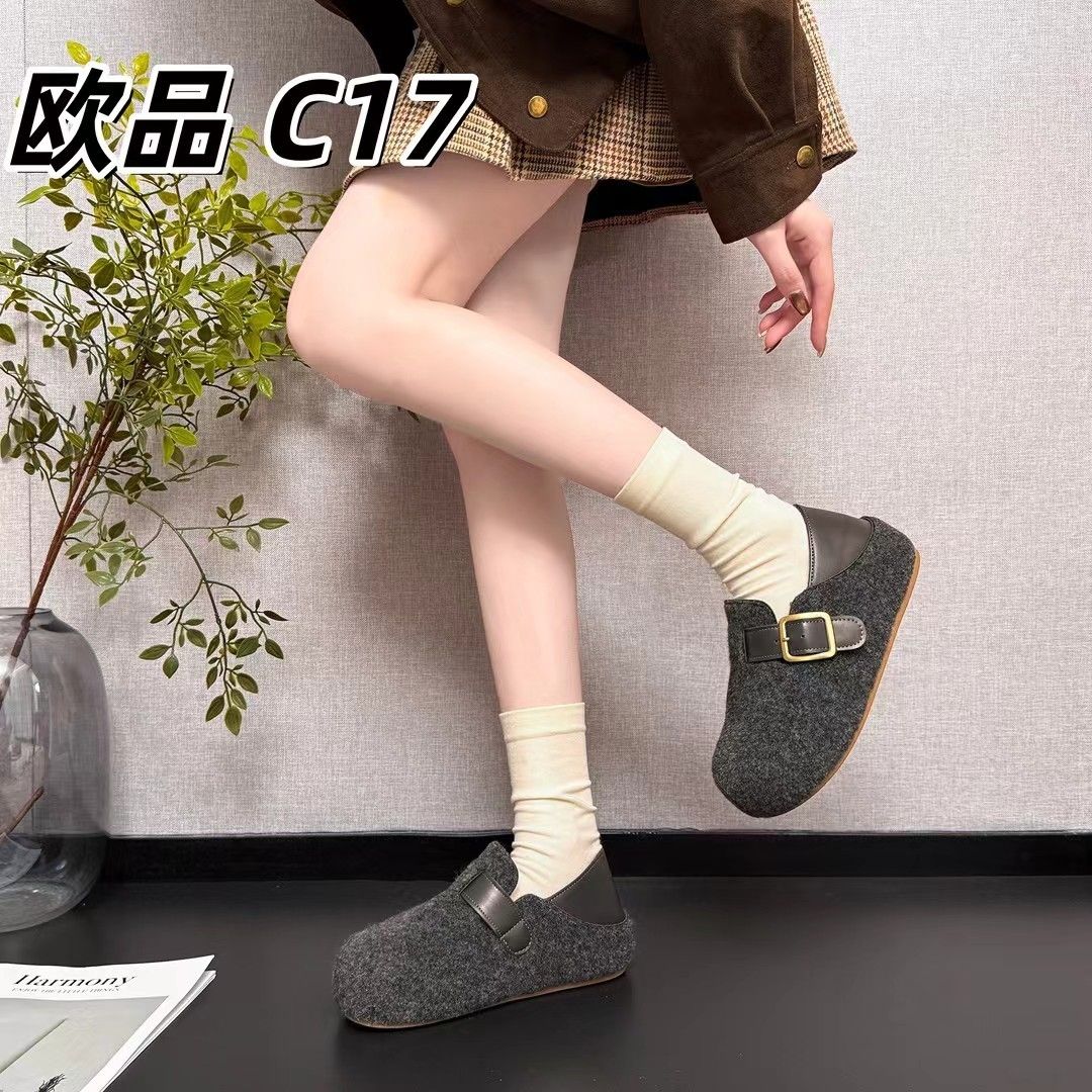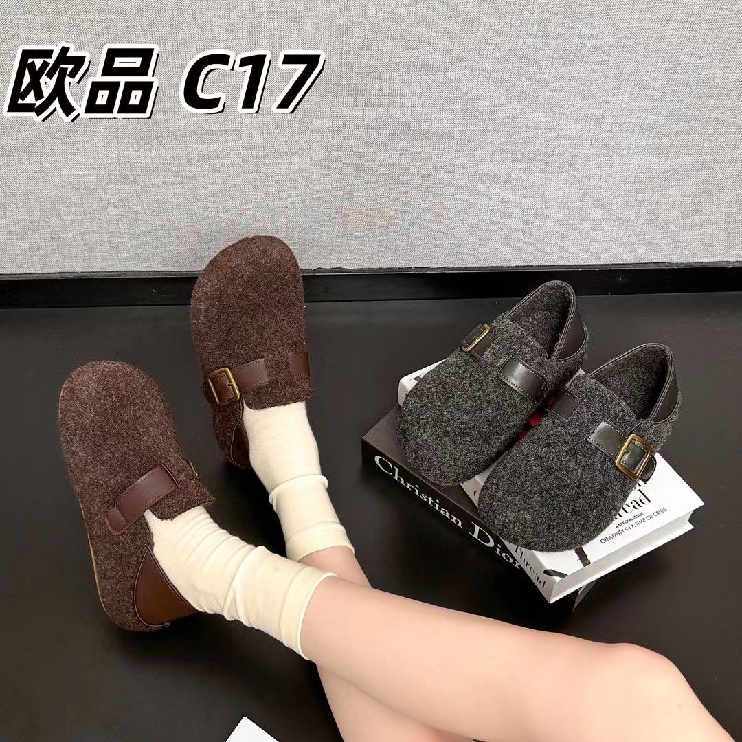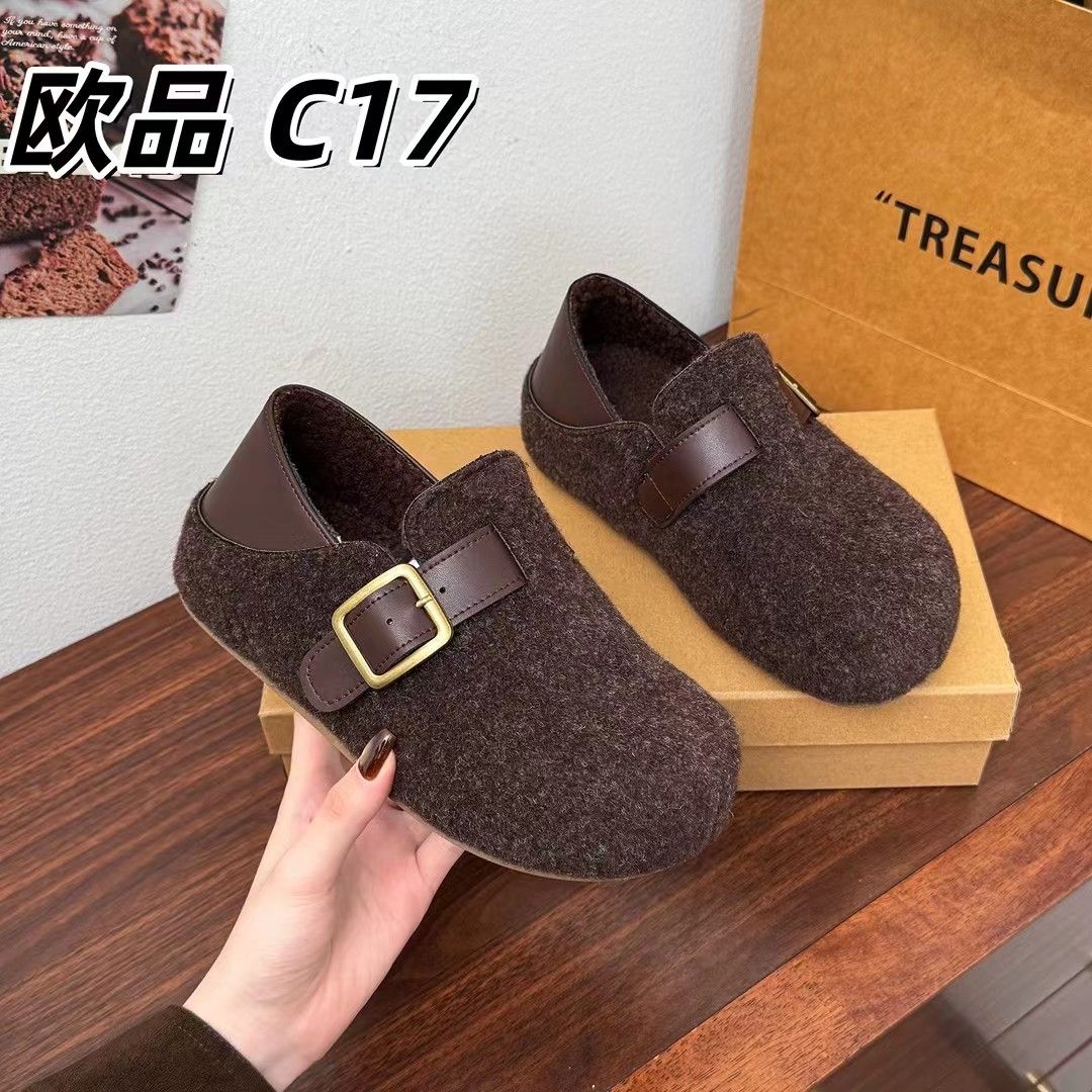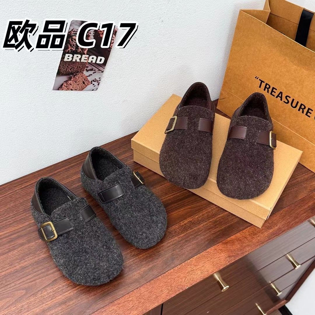 毛毛毛呢2025秋冬新款加绒保暖厚底脚蹬懒人鞋厚底勃肯棉鞋