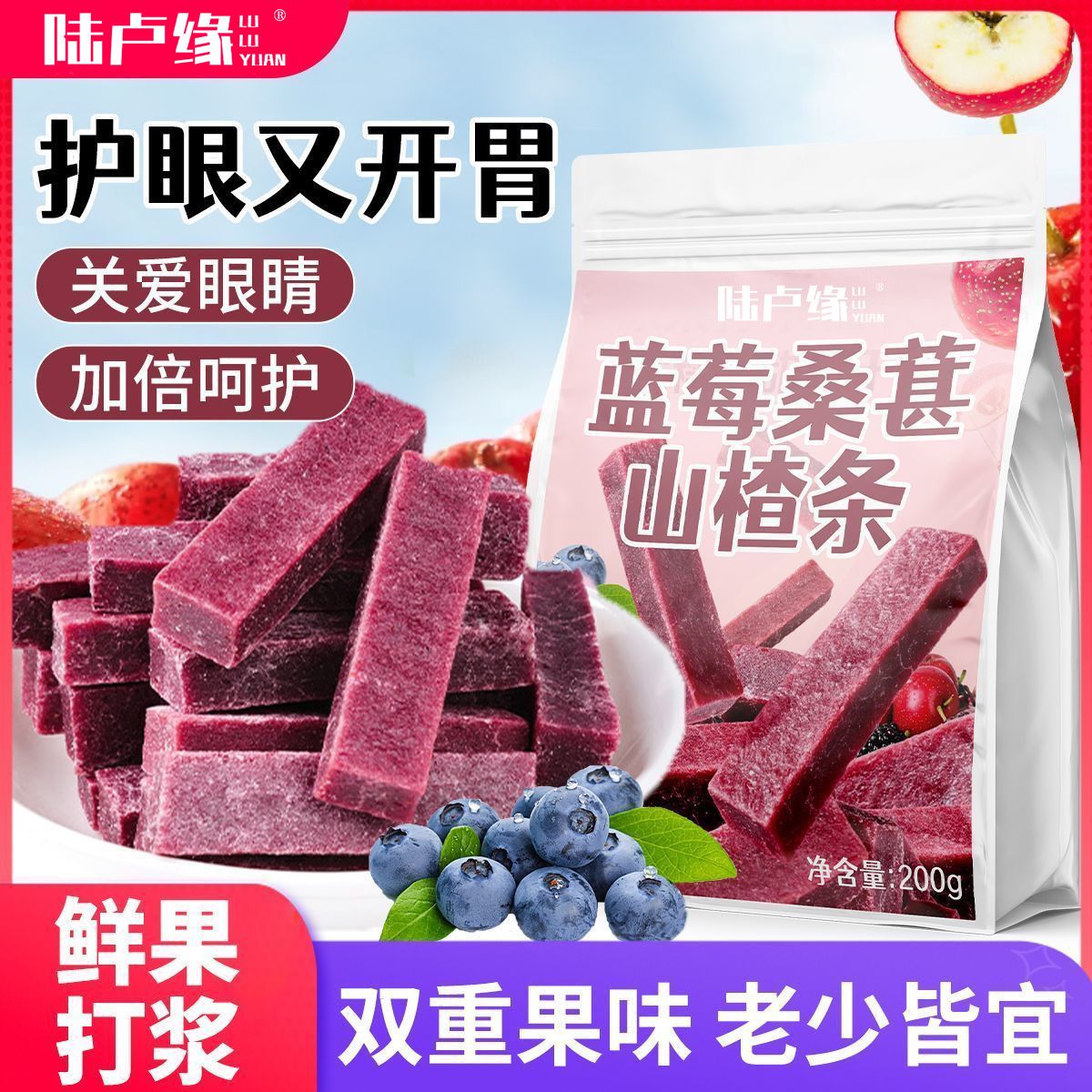 陆卢缘蓝莓桑葚山楂条正宗鲜果原浆无添水果茶/果粒茶/调味茶
