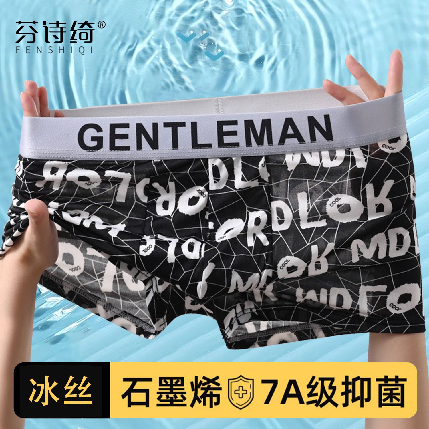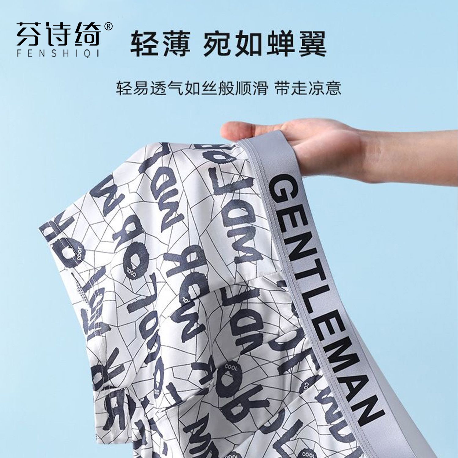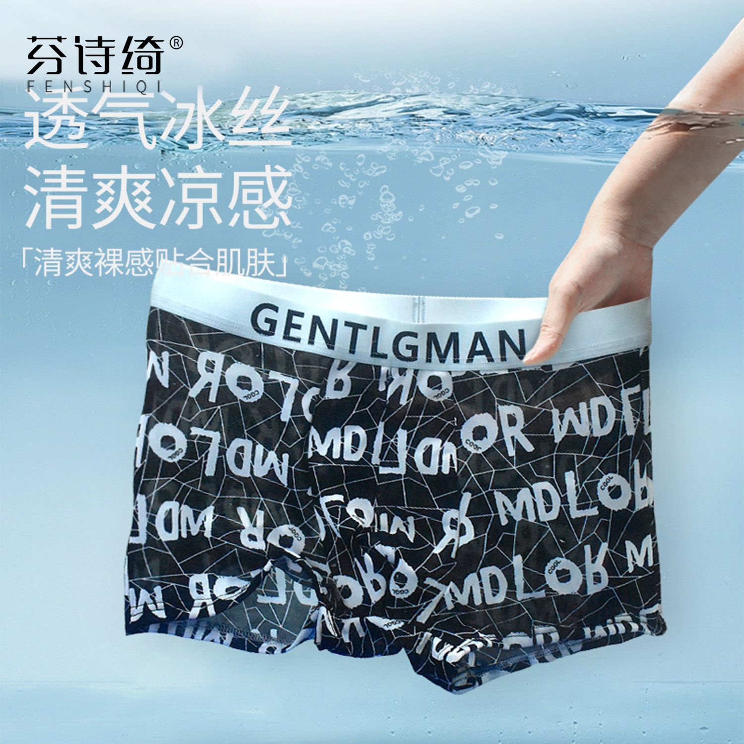 芬诗绮冰丝内裤男士平角裤夏季速干抗菌凉感中腰四角裤短裤