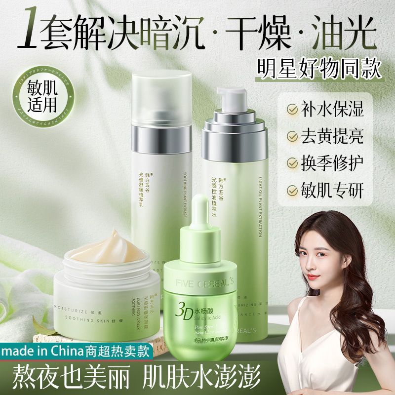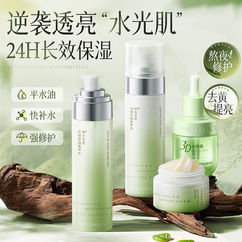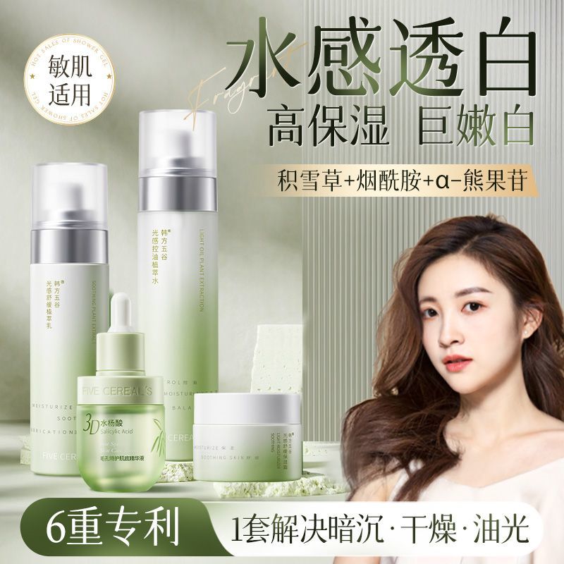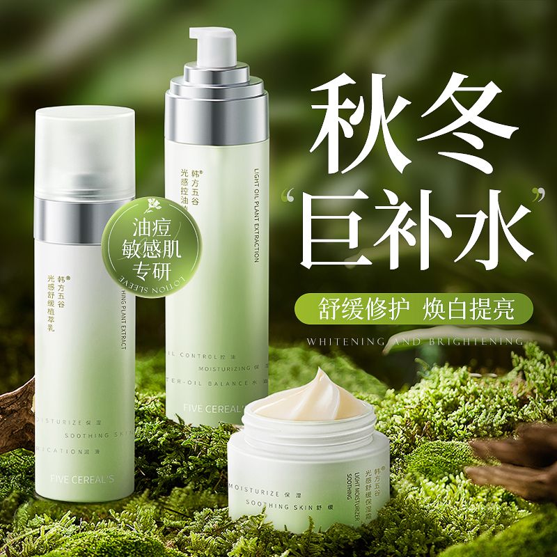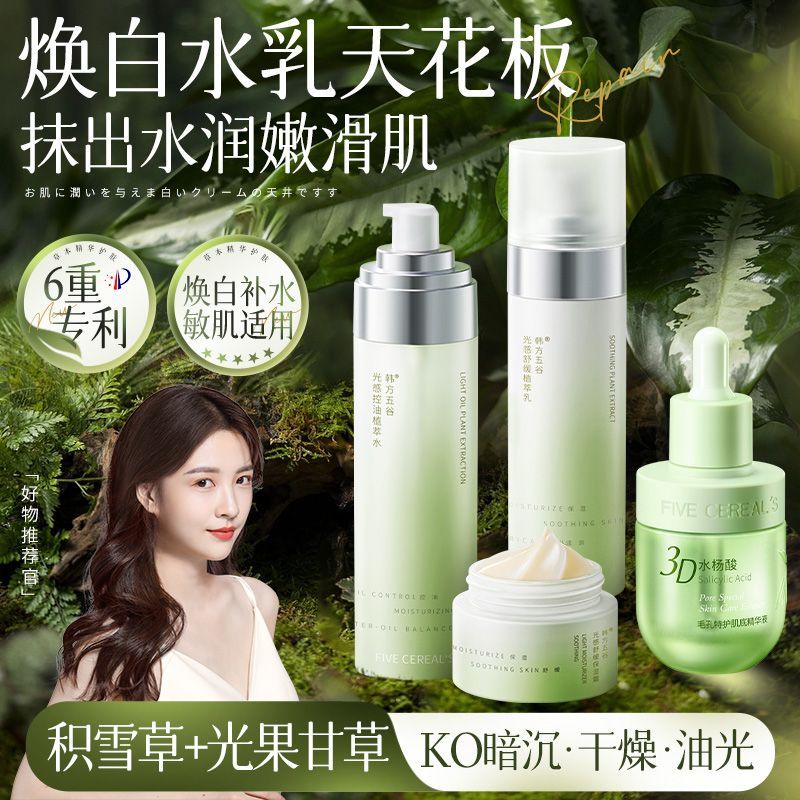积雪草水乳套装补水去黄提亮熬夜修护控油保湿焕白抗痘女韩方五谷