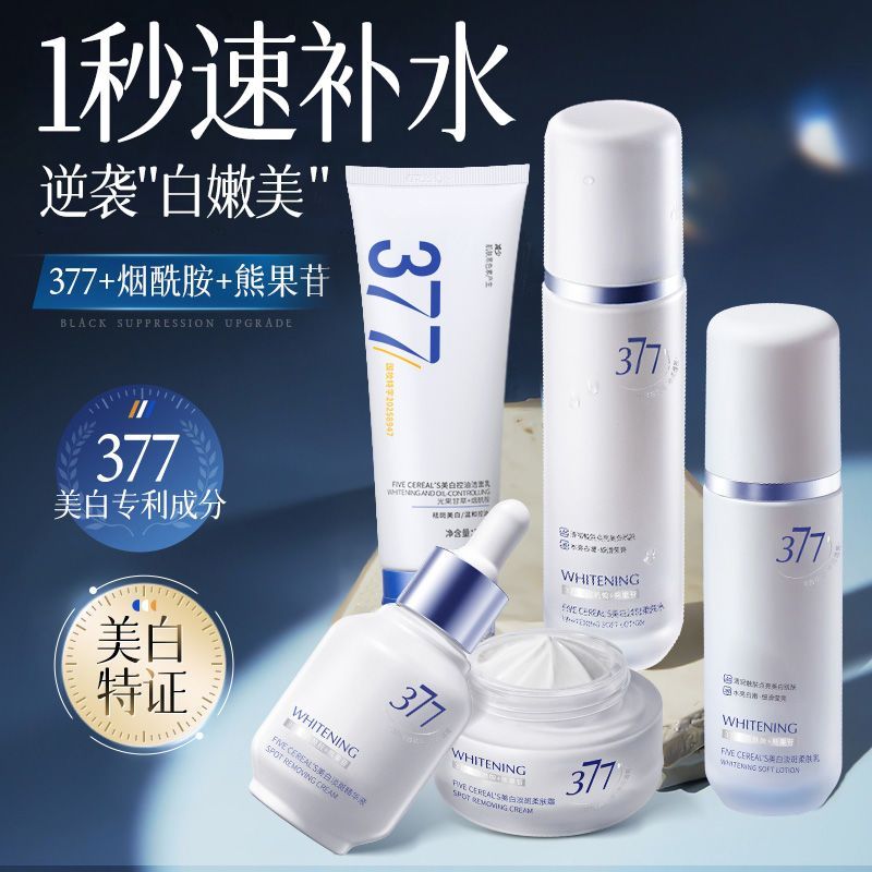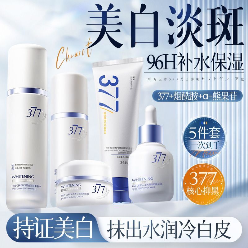 377美白祛斑水乳组合美白补水淡斑去黄熬夜修护抗糖氧化韩方五谷