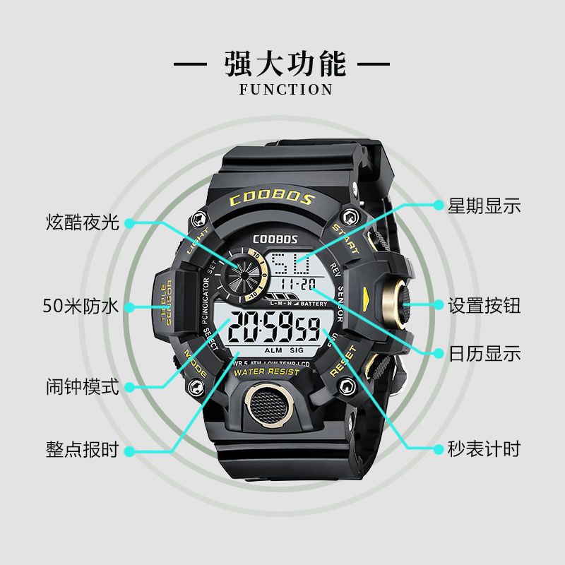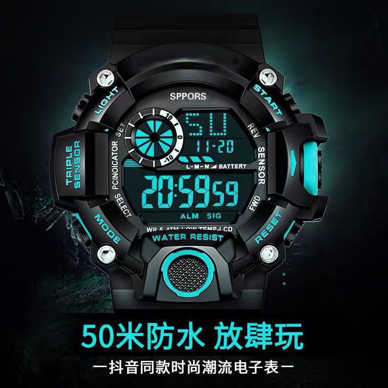 电子表男女初高中生学生炫酷韩版潮流防水夜光闹钟青少年颜值手表