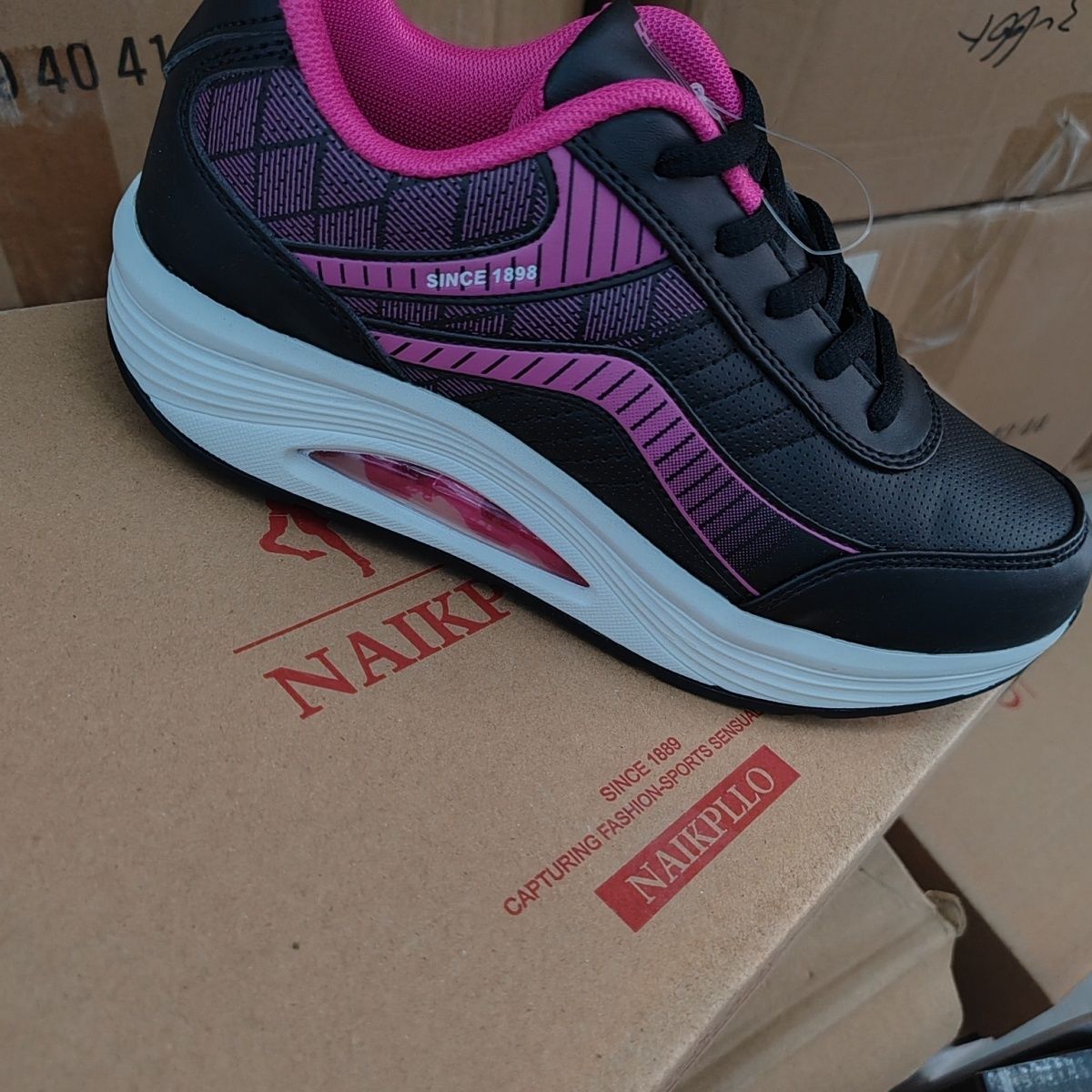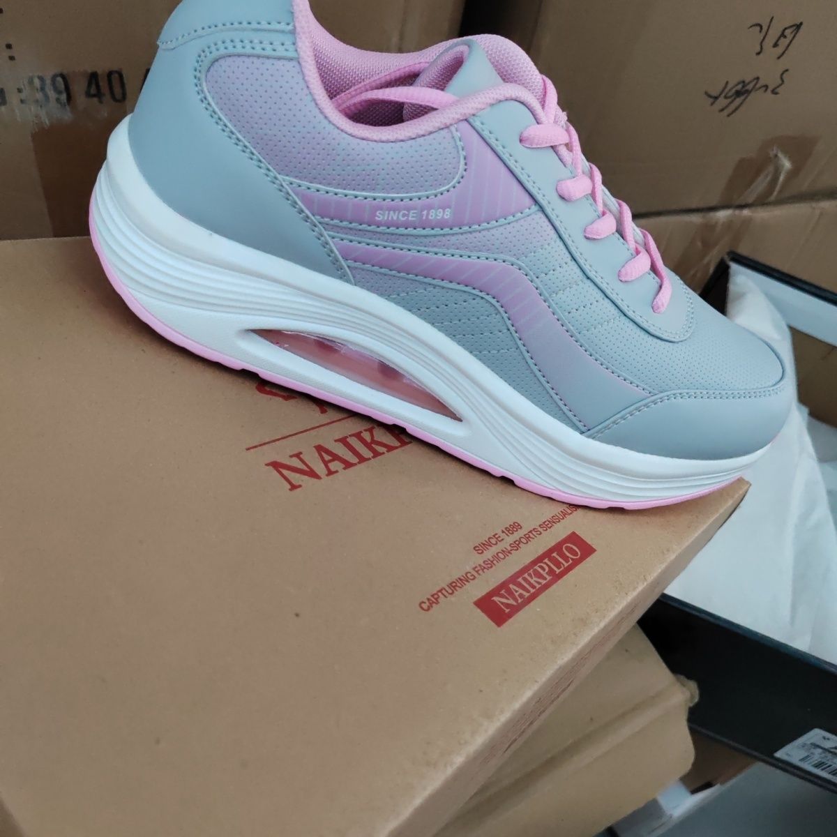 鞋子皮面春秋季轻便女鞋运动鞋休闲摇摇厚底软底妈妈跑步旅游鞋