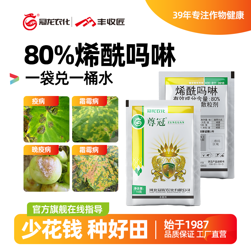 80%烯酰吗啉杀菌剂冠龙尊冠霜霉疫病晚疫病干尖黄叶正品厂家农药