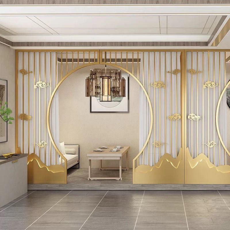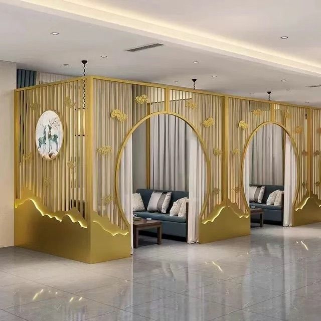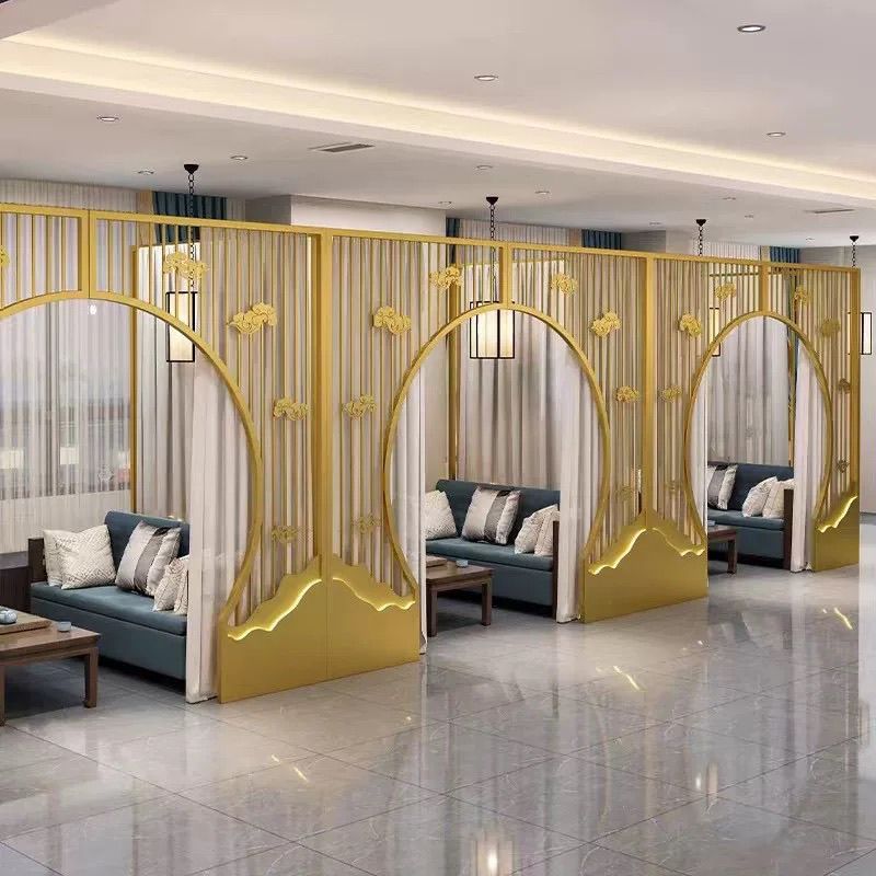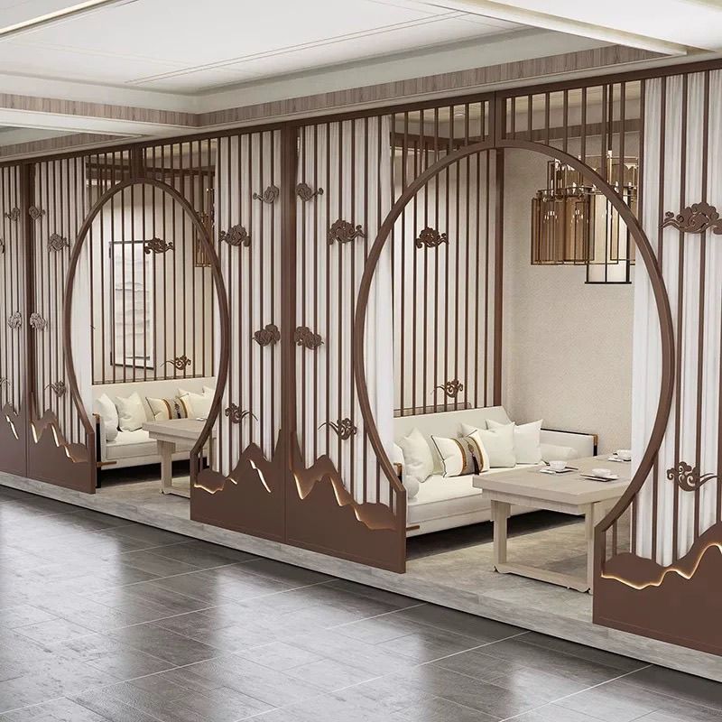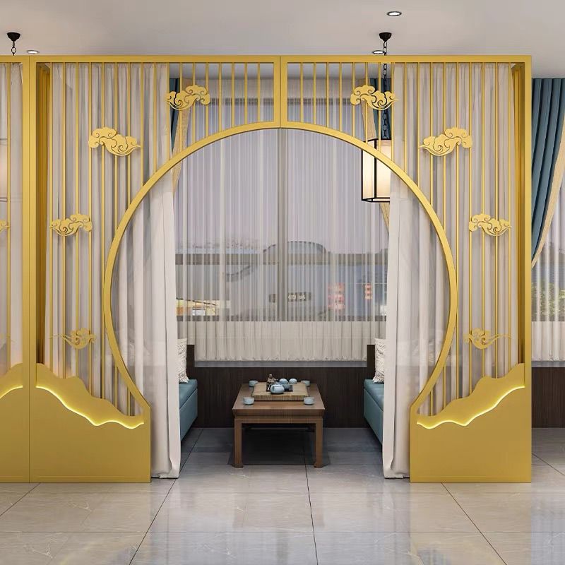 定制新款铁艺中国风网红月亮拱门屏风隔断卡座火锅餐厅商用美容院