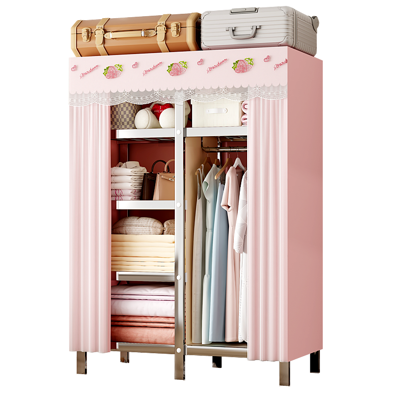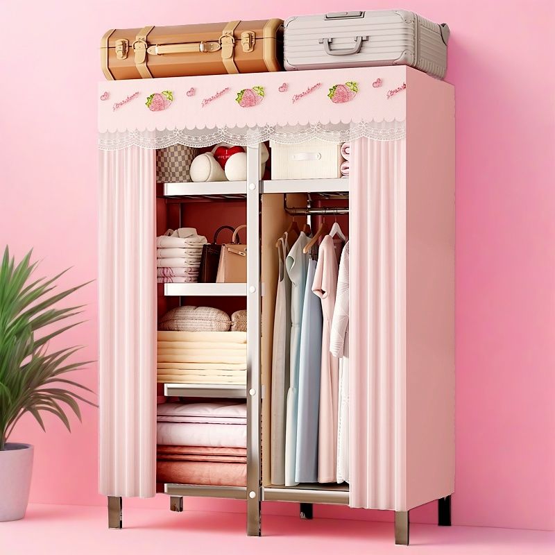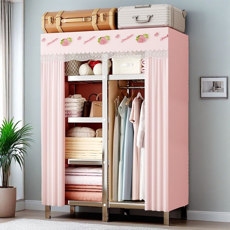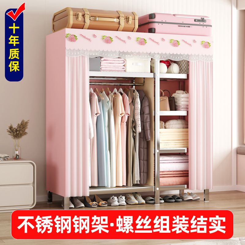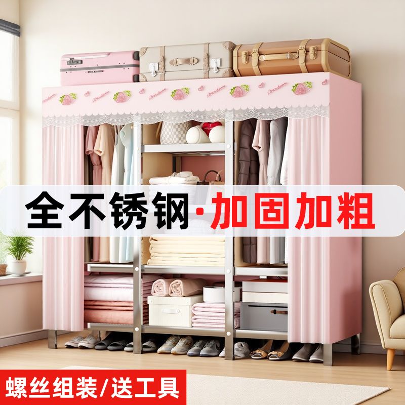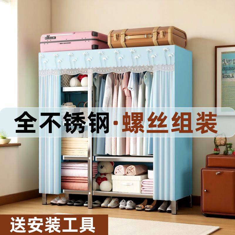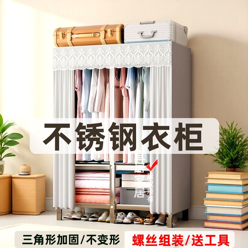 儿童简易布衣柜不锈钢衣柜家用经济型简易衣橱卧室全钢加粗加固新