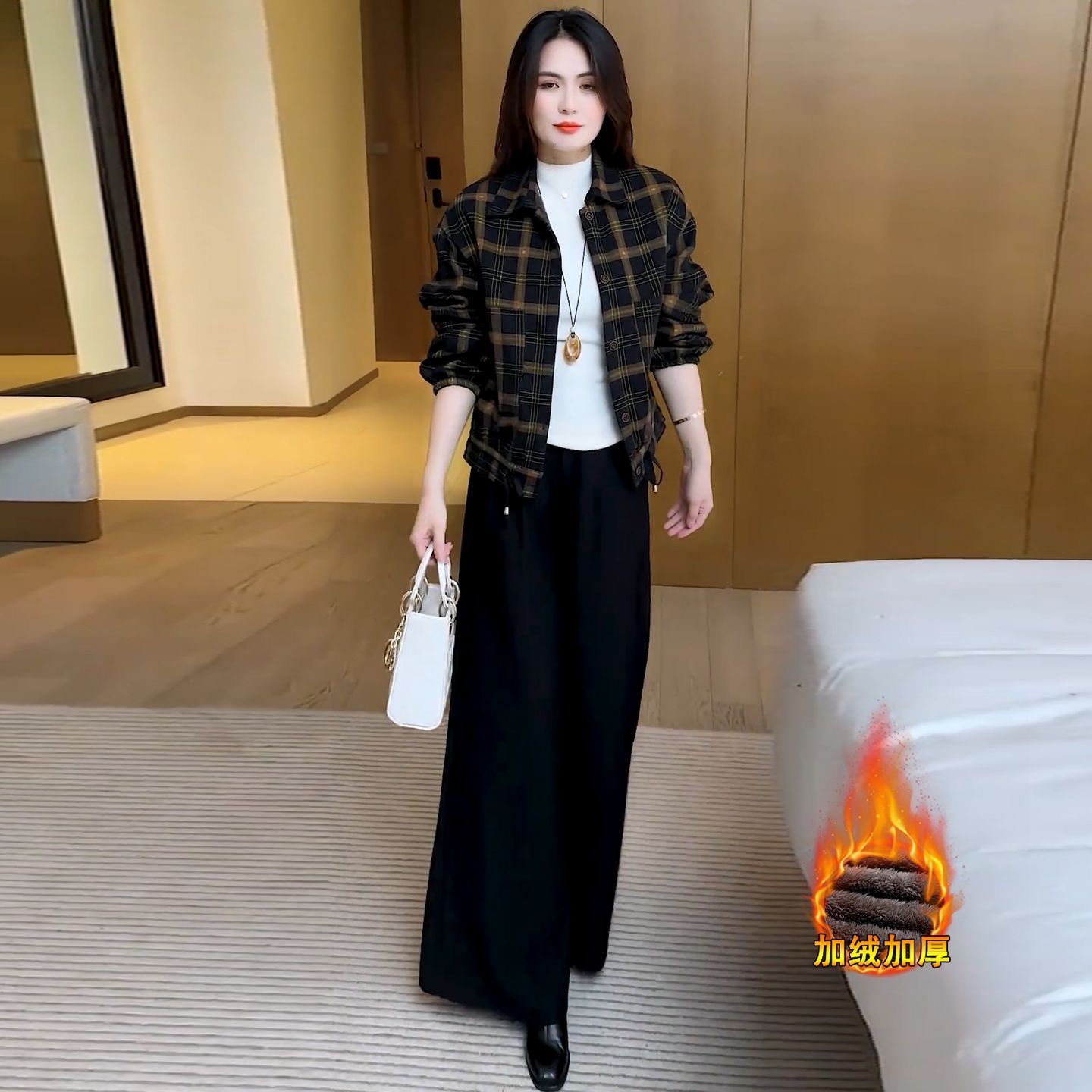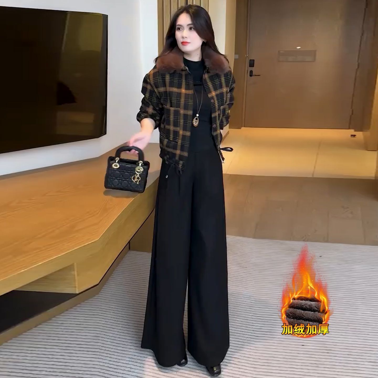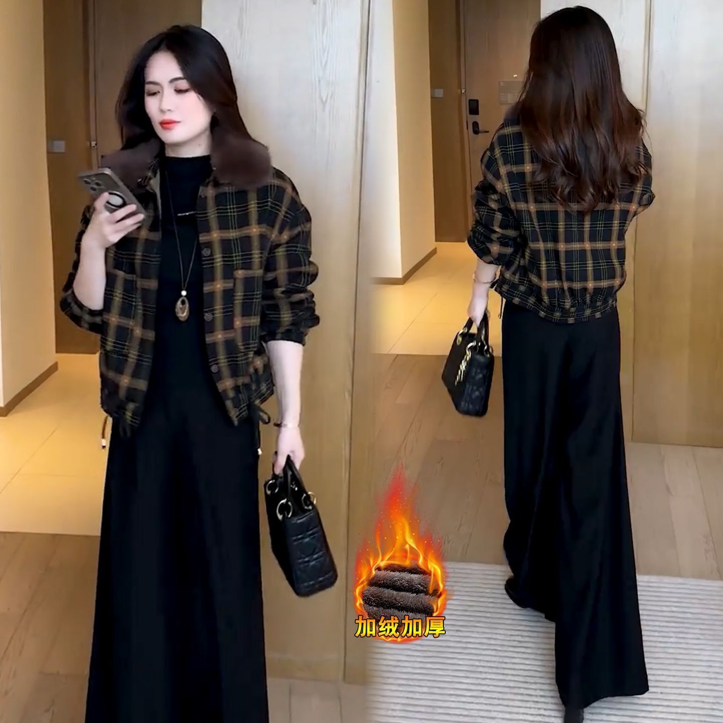 加绒加厚高档女外套2025冬季新款时尚洋气宽松妈妈装格子保暖上衣
